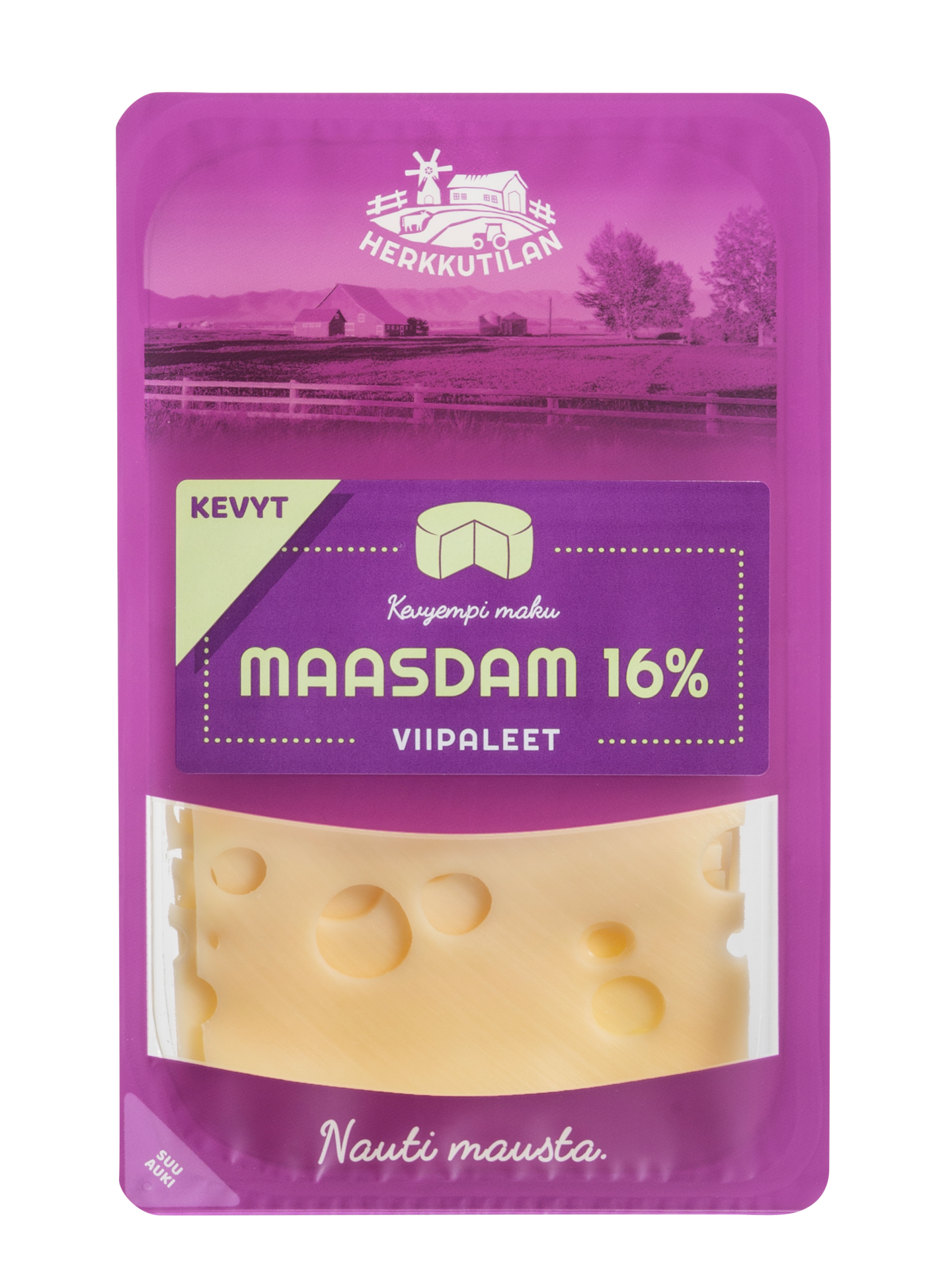 Herkkutilan Kevyt Maasdam on kevyt ja maistuva kevytjuusto. Viipaleiden maku ja koostumus on erinomainen keveydestä huolimatta!