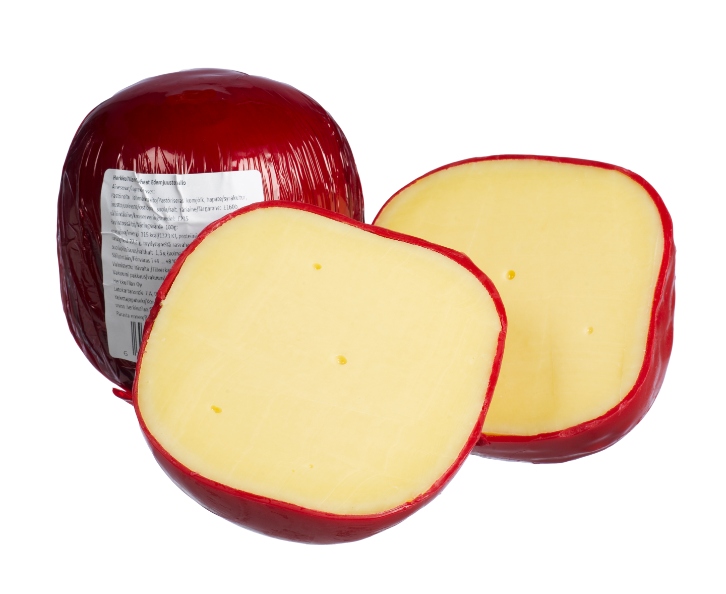 Punaisen kääreen syleilemä Herkkutilan Edam -pallojuusto on klassikkotuote, joka sopii miedon ja lempeän makunsa ja puolikovan rakenteensa vuoksi monenlaisiin resepteihin. Kokeile suolaisten muffinssien ja piirakoiden täytteenä, kuutioi salaattiin tai keittoihin ja leikkaa siivu voileivän päälle.