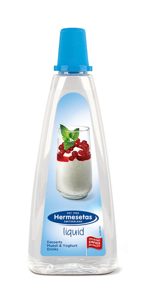 "Hermesetas-makeutusneste on 10 kertaa makeampaa kuin sokeri ja on täysin kaloriton. Soveltuu ruuanlaittoon sekä leivontaan ja sitä voi keittää ja pakastaa.