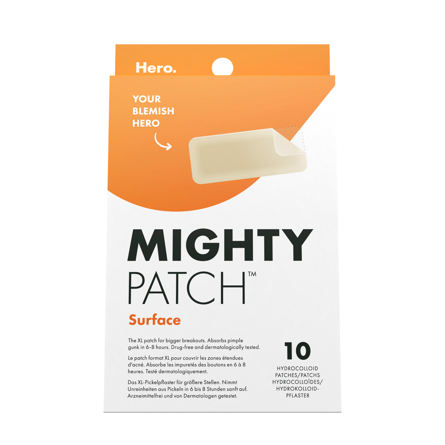 Kun tavallinen laastari ei riitä, Mighty Patch Surface on kooltaan isompi hydrokolloidilaastari, joka peittää kookkaammatkin näppylät ja saa finnit näyttämään pienemmiltä tunneissa. Tämä suuri laastari sopii käytettäväksi paitsi kasvoilla myös vartalon näppylöille!