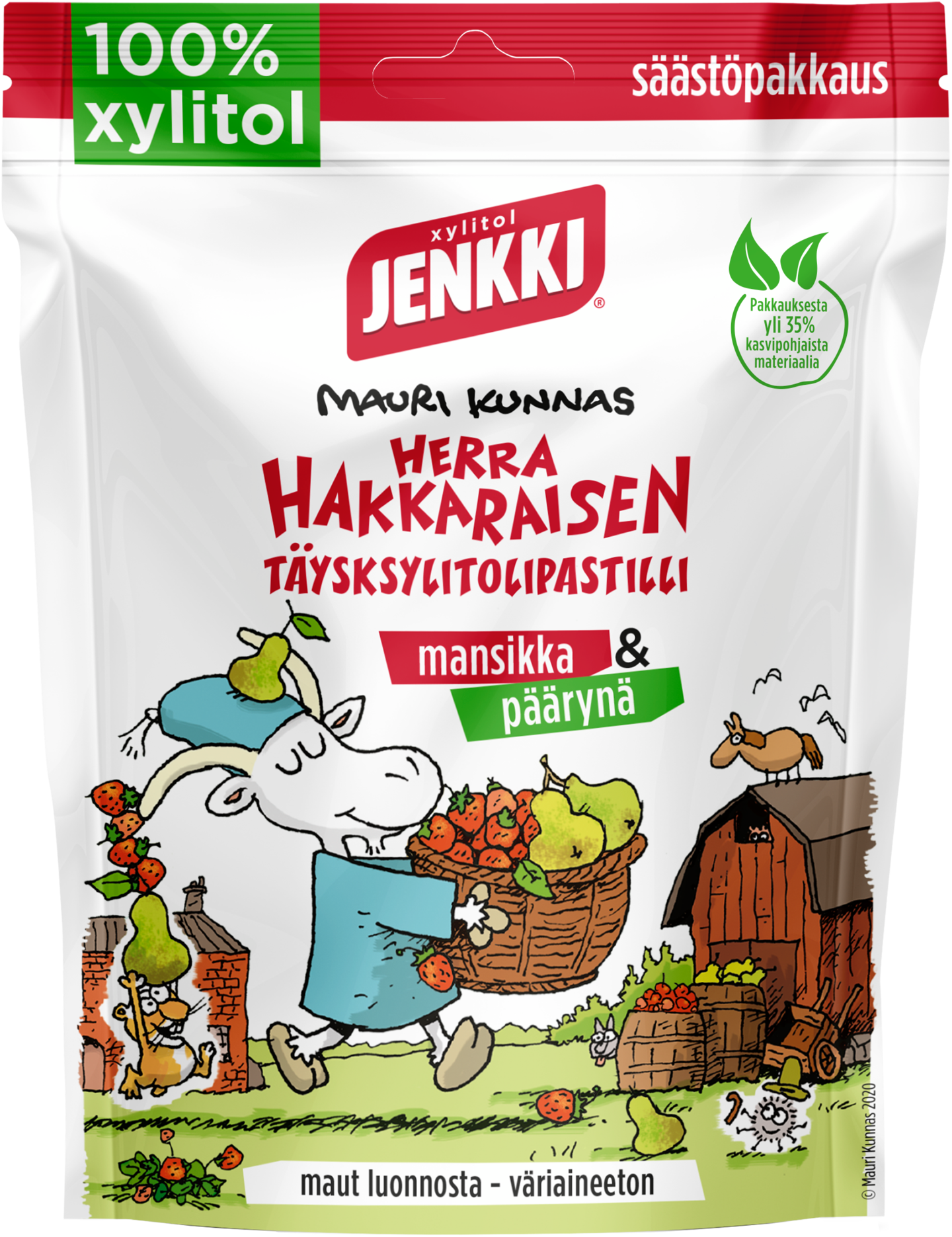 Jenkki Herra Hakkaraisen täysksylitolipastilli -sekoitepussissa on kaksi lapsiperheiden suosikkimakua, mansikka ja päärynä. Pastillit sopivat aivan pienillekin lapsille, sillä ne ovat miedon makuisia ja sulavat helposti suuhun. Pastillit saavat makunsa luontaisista aromeista. Riittoisa uudelleen suljettava perhepakkaus. Pakkauksesta yli 35% on kasvipohjaista materiaalia, joka on helppo kierrättää muovina. Herra Hakkarainen -pastilleilla on Suomen Hammaslääkäriliiton suositusmerkki.