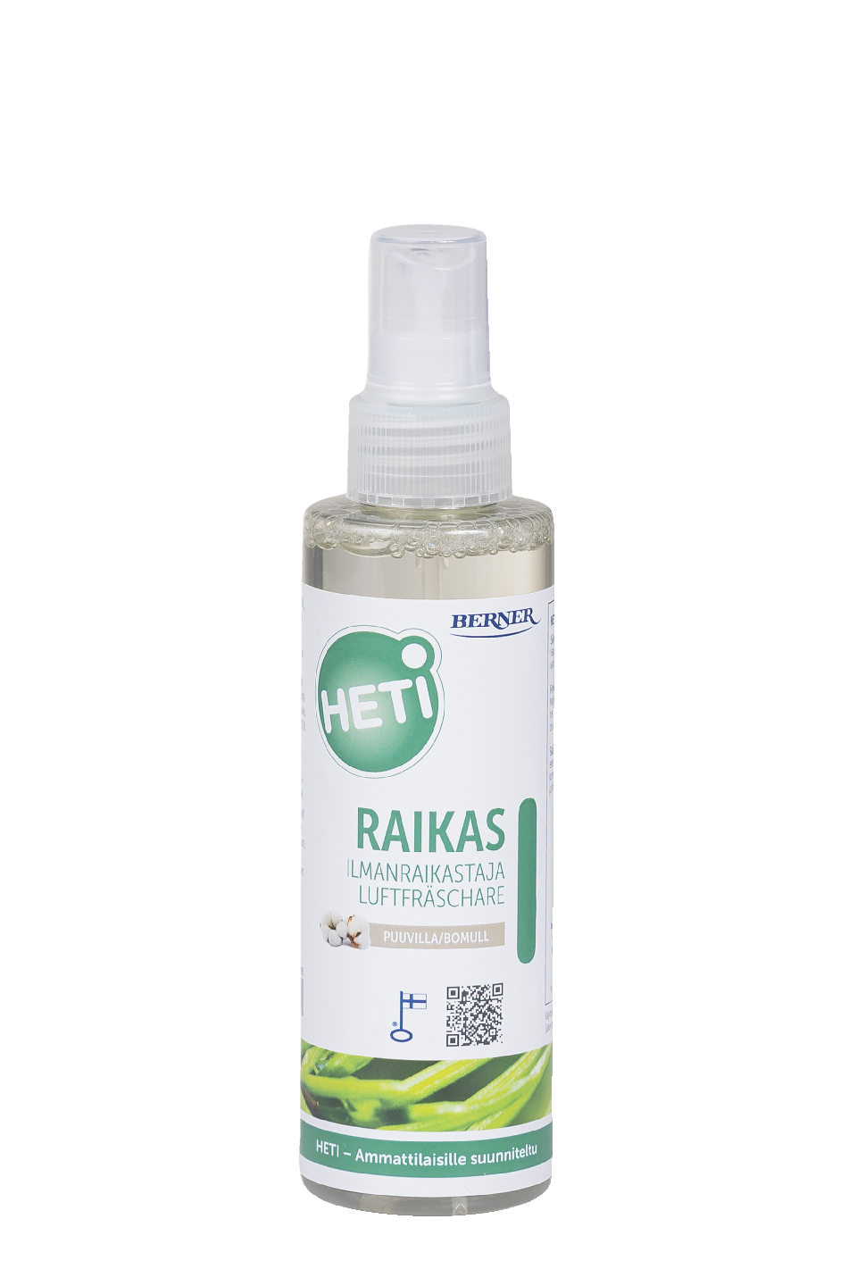 Tehokas ilmanraikastaja HETI Raikas puuvilla sitoo ja neutraloi epämiellyttäviä hajuja. Käyttökohteita mm. saniteettitilat, pukuhuoneet, hotellihuoneet, tupakointitilat ja jätehuoneet. Tuotteella on miellyttävä ja raikas puuvillan tuoksu.