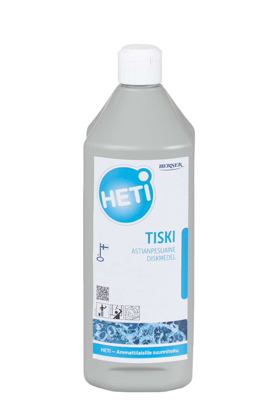 Tehokas astianpesuaine HETI Tiski soveltuu astioiden käsinpesuun. Tuote sopii myös ikkunanpesuun sekä päivittäiseen siivoukseen. HETI Tiski on riittoisa, runsasvaahtoinen, miedon tuoksuinen ja hellävarainen käyttäjälle.