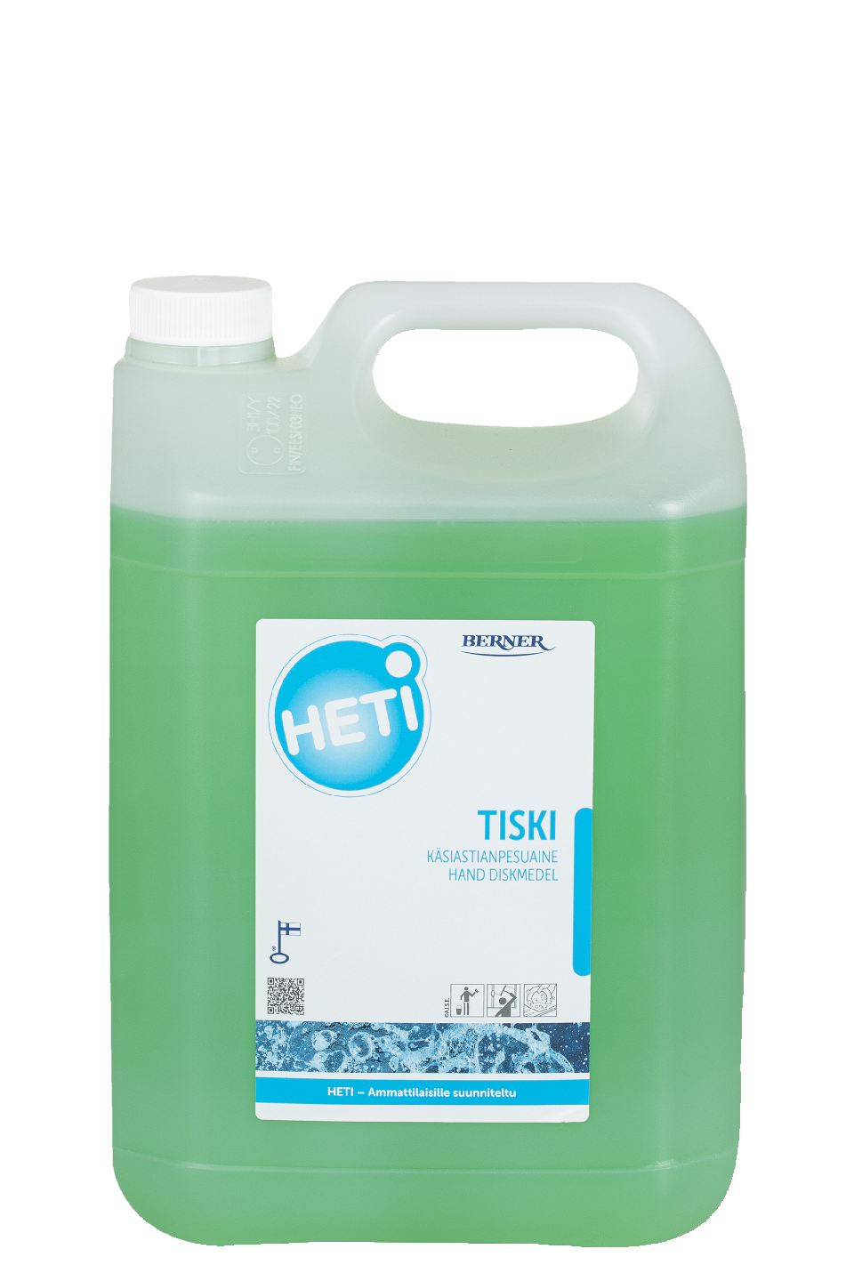 Tehokas astianpesuaine HETI Tiski soveltuu astioiden käsinpesuun. Tuote sopii myös ikkunanpesuun sekä päivittäiseen siivoukseen. HETI Tiski on riittoisa, runsasvaahtoinen, miedon tuoksuinen ja hellävarainen käyttäjälle.