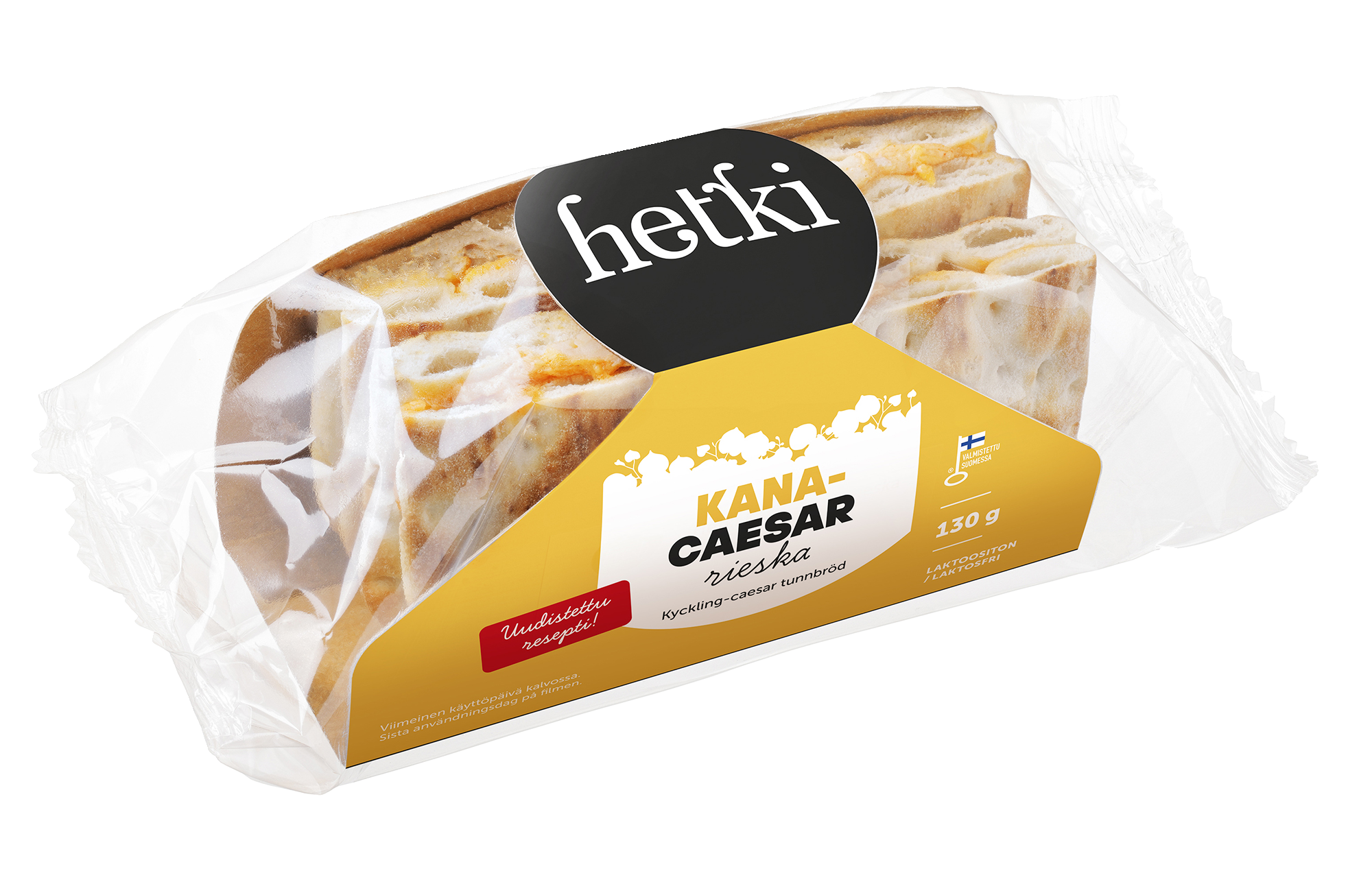 Uudistetun kana-caesar rieskan täytteinä on broilerin fileekuutioita sekä mausteista caesarkastiketta tuoreen salaatin kera. Nauti leipä välipalana töissä, koulun jälkeen tai ota mukaan piknikille! LAKTOOSITON