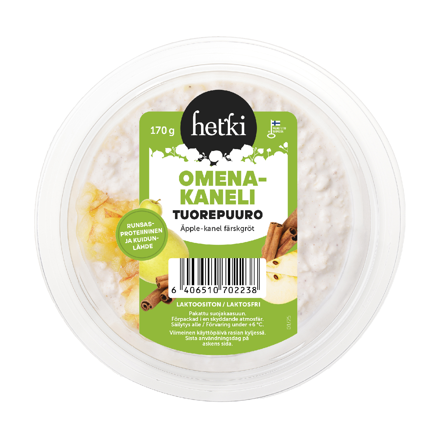 Omena-kanelituorepuuro on runsasproteiininen ja kuidunlähde. LAKTOOSITON.