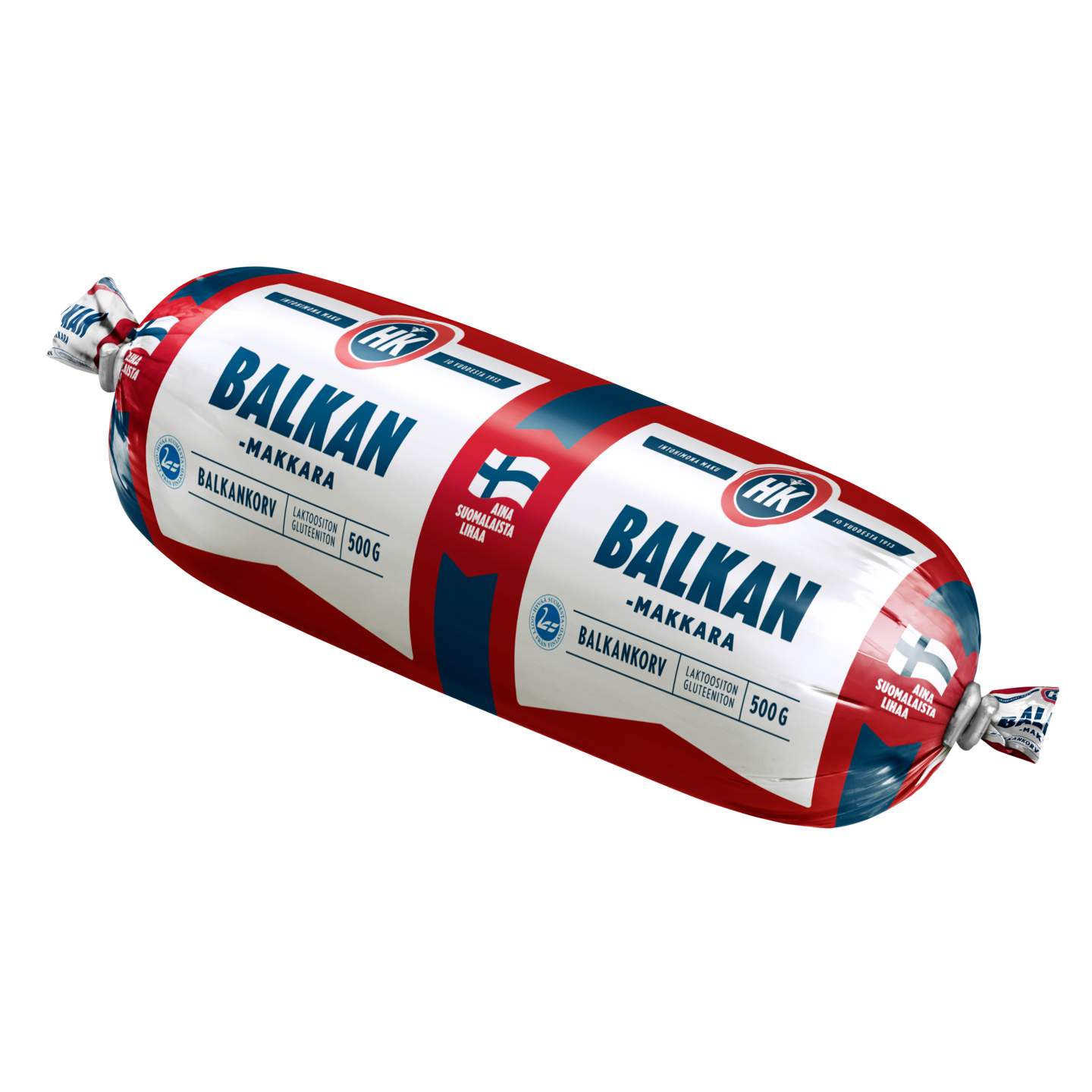 suomalainen liha (porsas, nauta), vesi, suomalainen koneellisesti erotettu liha (broileri, porsas), perunajauho, kamara, jodioitu suola, dekstroosi, stabilointiaine (E450), hapettumisenestoaine (askorbiinihappo), aromit, säilöntäaine (E250). Lihapitoisuus 42 %. Liha ja lihaan verrattavat valmistusaineet yhteensä 69 %. LAKTOOSITON. GLUTEENITON. PROTEIINIPITOINEN. Voimakassuolainen. Makkarankuori ei ole syötävä.