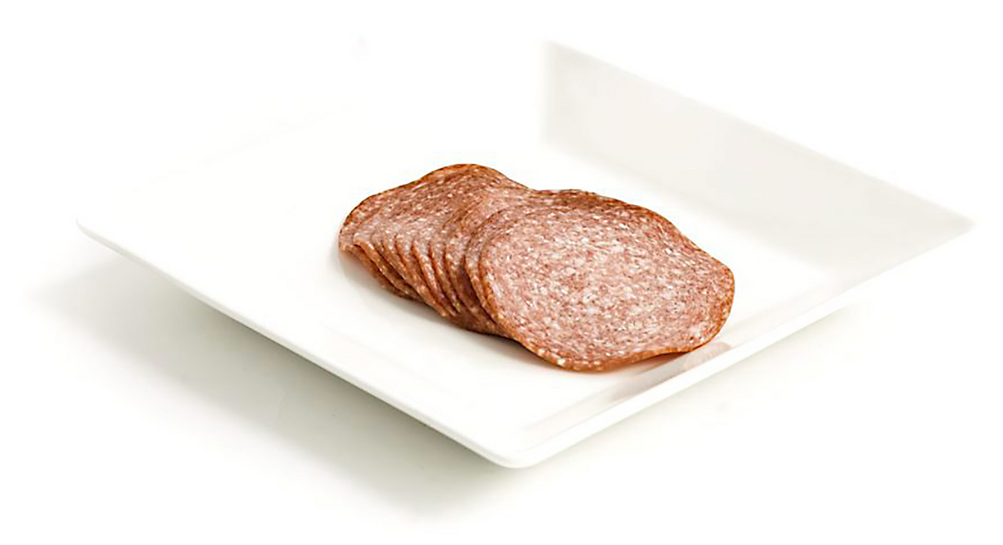 LaktoositonPerinteiseen tapaan suomalaisesta viljaporsaan ja naudan lihasta valmistettu meetvursti. Yksi viipale painaa noin 5 g