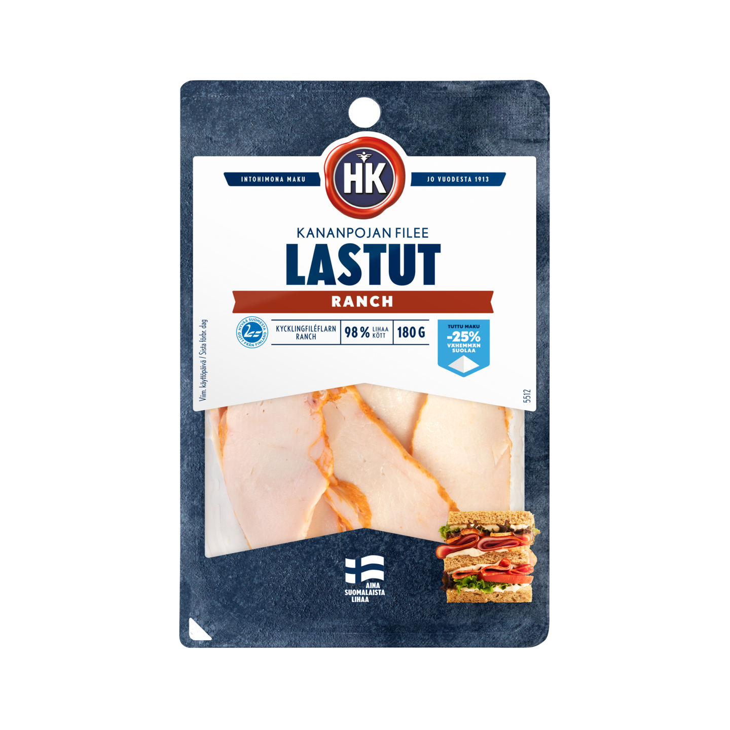 HK Lastut ovat mureaksi kypsennettyä suomalaista broilerinfileetä näppärinä lastumaisina siivuina. Lastut on maustettu Ranch-mausteella ja ne sopivat sekä kylmiin että lämpimiin leipiin ja muuhun helppoon ja nopeaan ruoanlaittoon. Valmista monikäyttöisistä lastuista vaikkapa pasta, pizza tai salaatti tai napostele sellaisenaan. Lajittele pakkaus käytön jälkeen muovina.