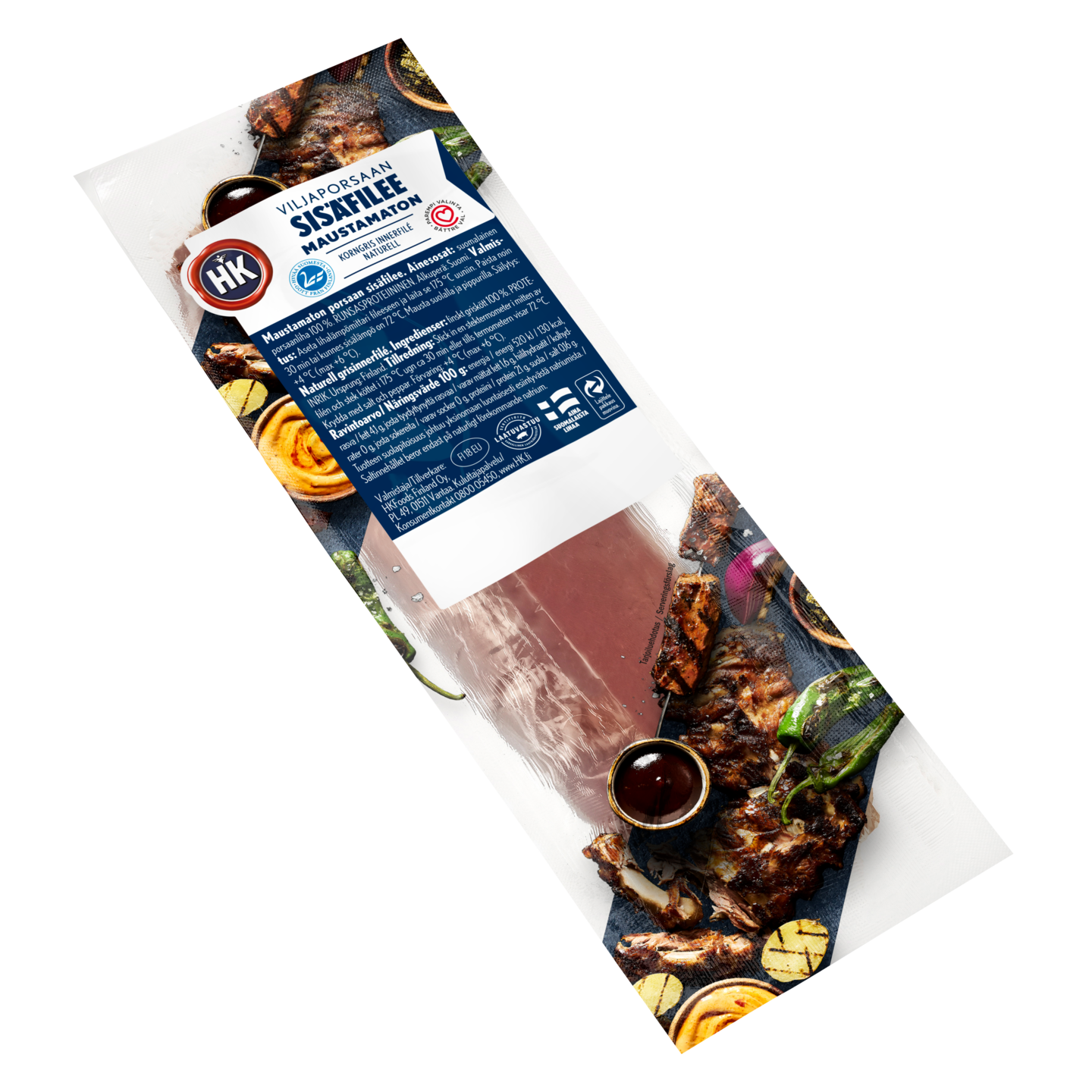 Kokonainen Viljaporsaan sisäfilee on mehukasta ja mureaa syötävää ja sen voi kypsentää kokonaisena grillissä tai uunissa tai sen voi leikata vaikkapa pihveiksi pannulle tai grilliin. Kokonaisena paistettaessa kannattaa hyödyntää lihalämpömittaria. Tuote on kypsää, kun sen sisälämpö on n. 72 astetta. Mausta suolalla ja pippurilla ja tarjoile hyvien lisukkeiden kera. HK viljaporsaan maustamaton sisäfilee on valmistettu suomalaisesta kotitiloillamme vastuullisesti kasvatetusta viljaporsaan lihasta. Tuotteelle on myönnetty Sydänmerkki, joka kertoo tuotteen olevan rasvan laadun ja määrän sekä suolan määrän osalta hyvä valinta. Lajittele pakkaus käytön jälkeen muovina.