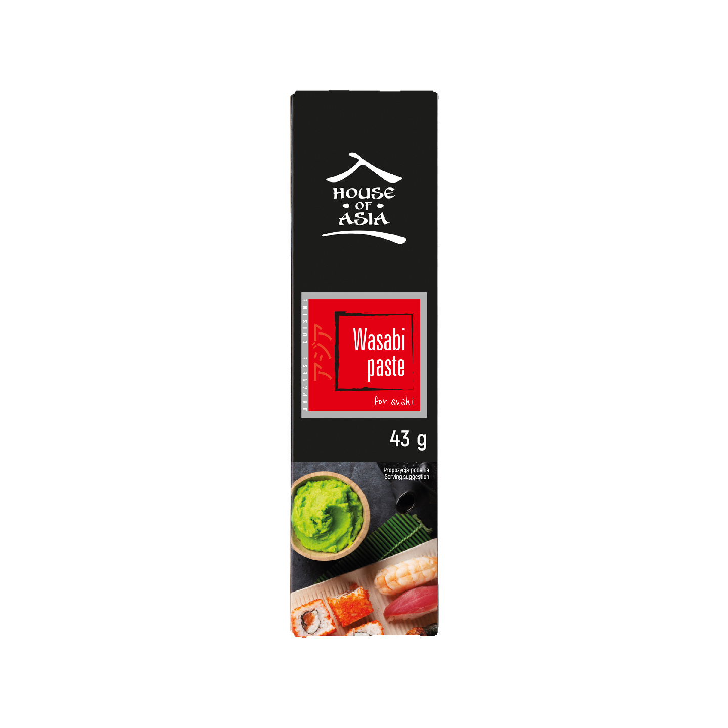 Piparjuurijauhe 42%, kosteudensäilyttäjä (E420), vesi, SOIJAöljy, japanilainen piparjuuri wasabi 5%, väri (E141), suola, kurkuma, sokeri, happamuudensäätöaine (E330), sakeuttamisaine (E415)