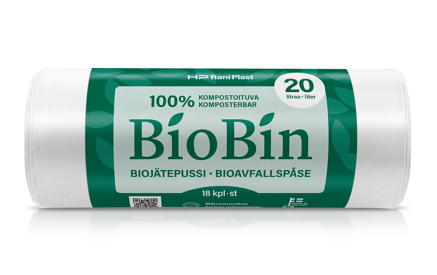 100-prosenttisesti kompostoituva ja biohajoava.