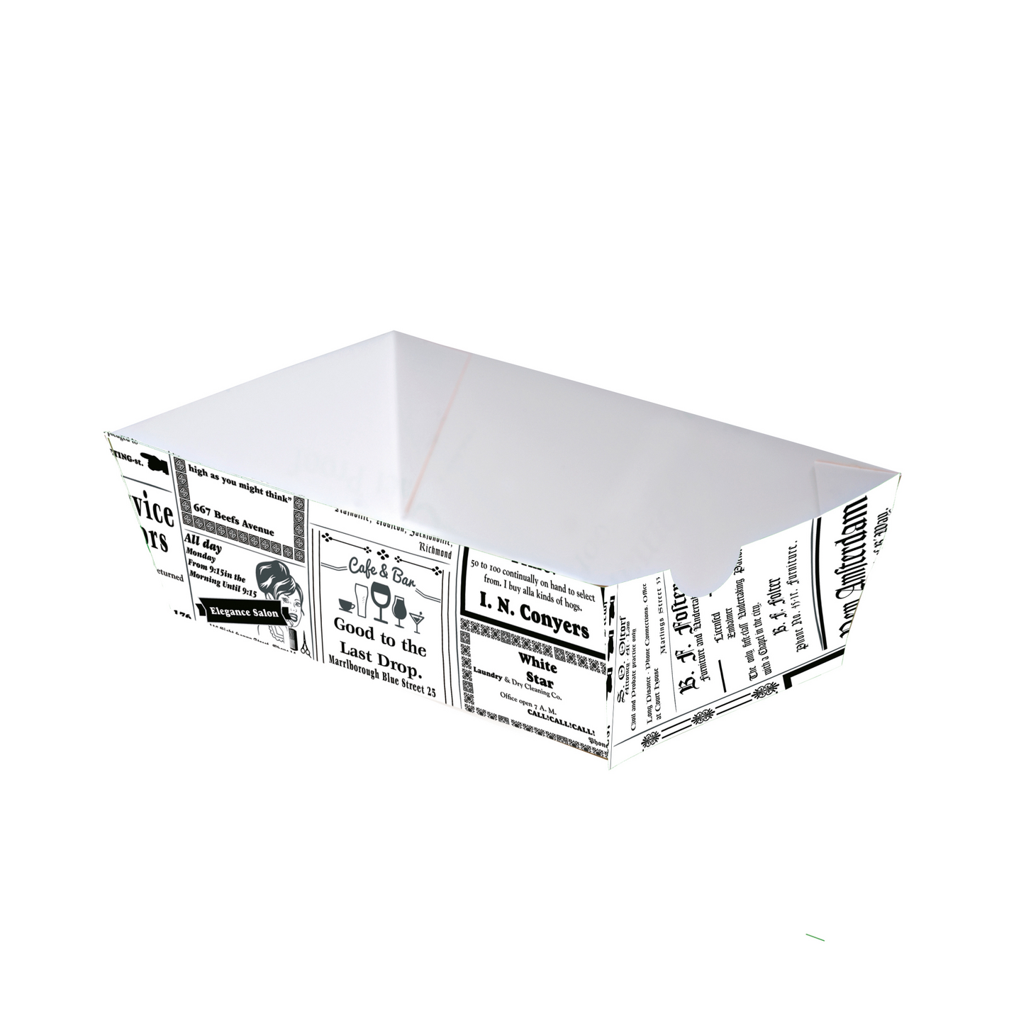 Tämä kartonkirasia on rasvankestävä ja sopii erinomaisesti kaikille grilliherkuille, kuten ranskalaisille ja makkaroille. Se soveltuu myös muiden kuumien ja kylmien ruokien, kuten nachojen, sormiruokien tai salaattien, tarjoiluun. Käytön jälkeen se kierrätetään kartonkina.