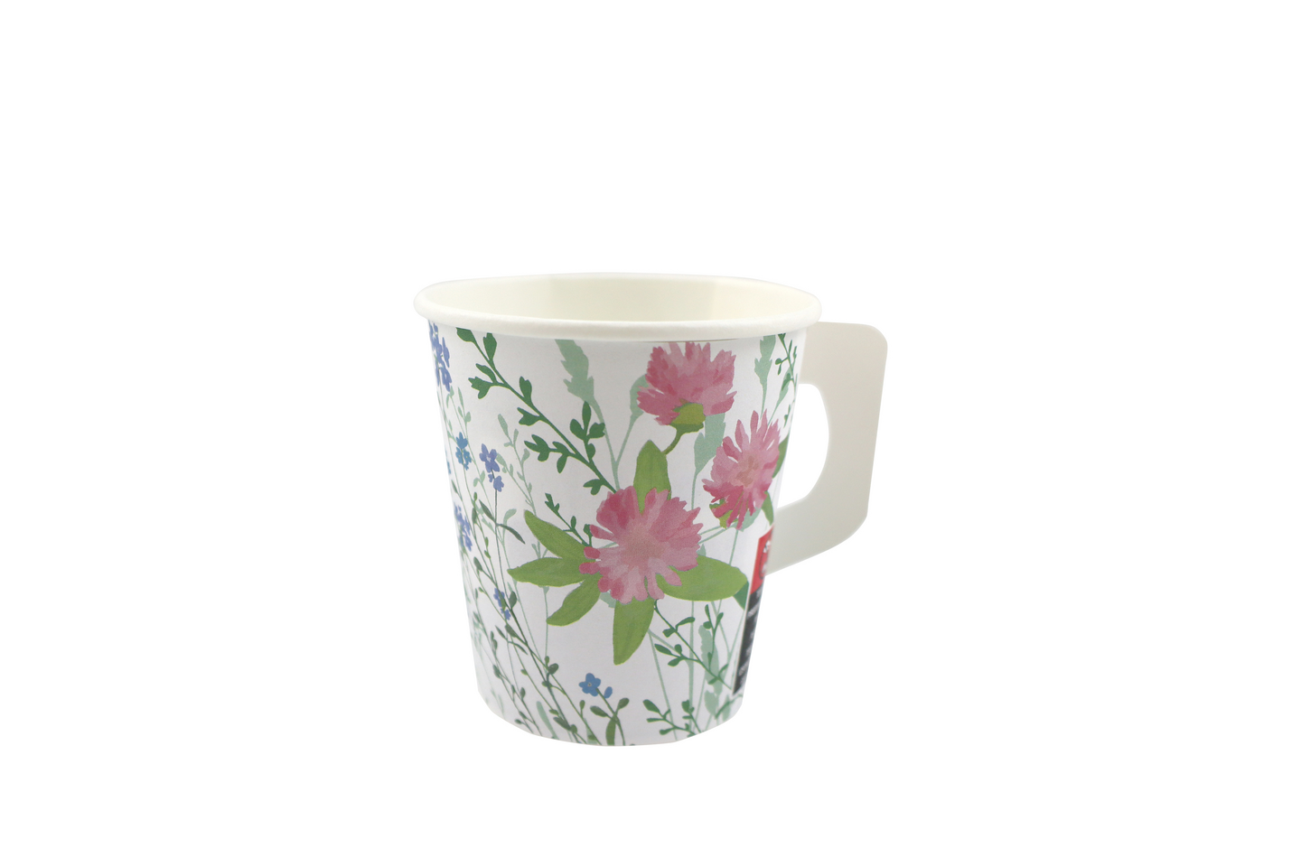 Joutsenmerkitty kasvipohjainen kuumakuppi kauniilla kesäkuosilla. Kierrätetään kartonkina.