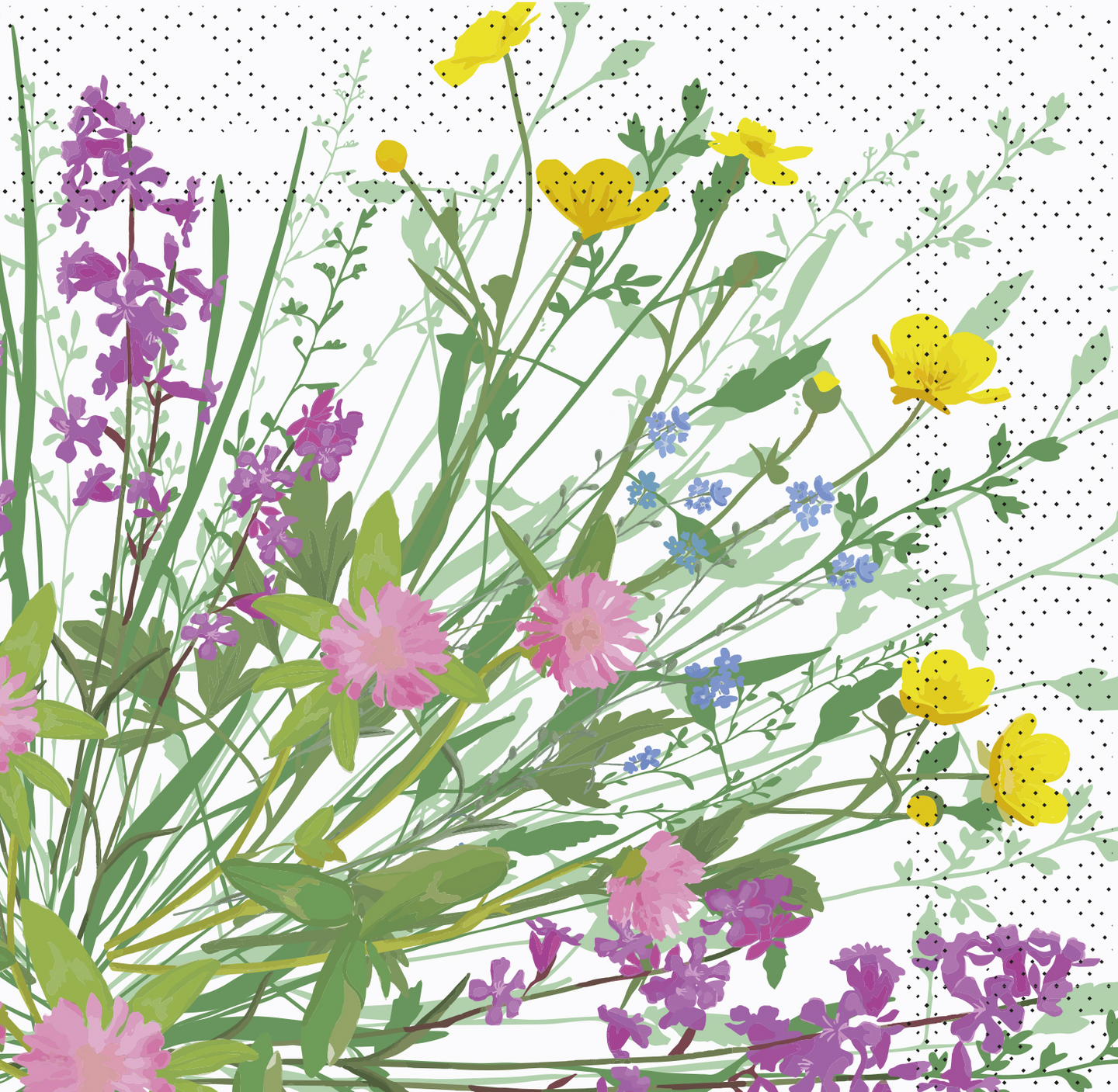 Joutsenmerkitty lautasliina kauniilla kesäkuosilla. Kierrätetään pehmopaperina.