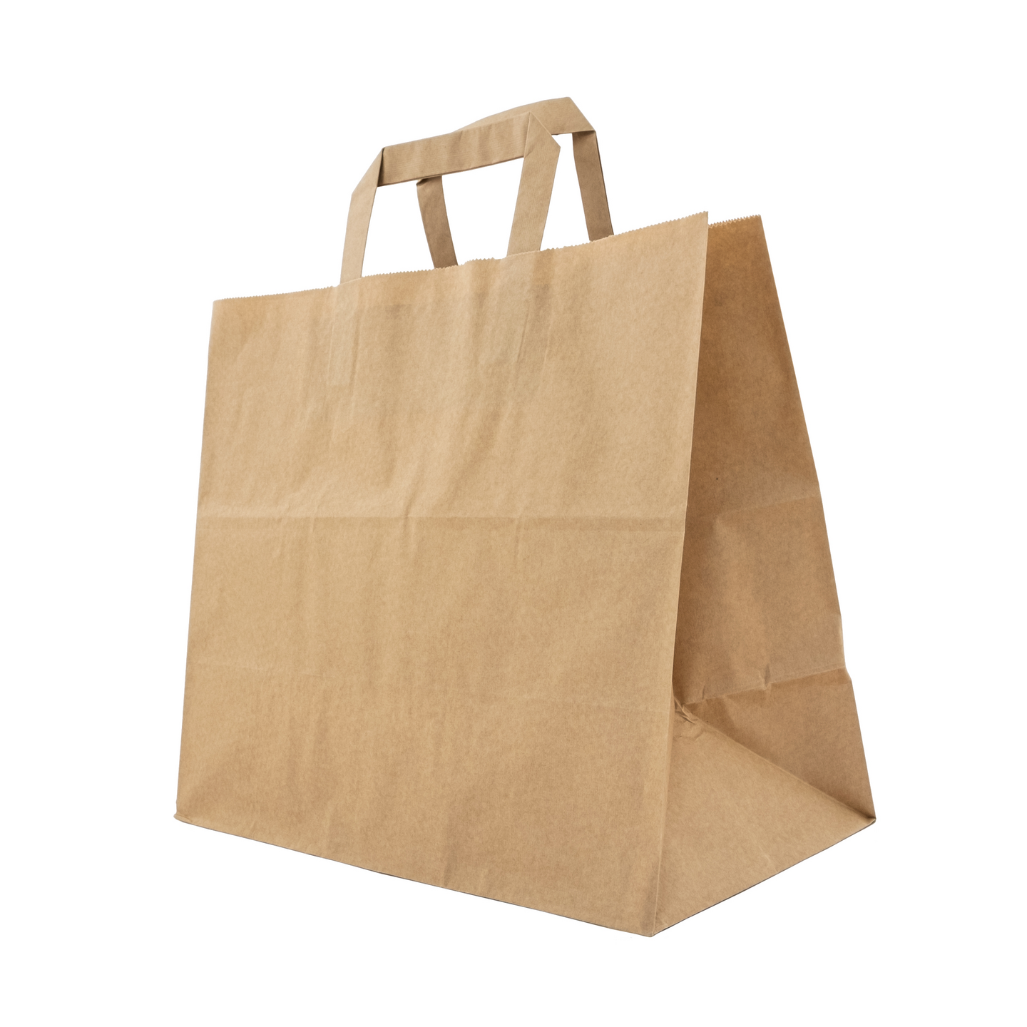 Luonnollisen näköinen ruskea paperikassi, jossa kantokahvat. Ihanteellinen toimituksiin ja take away:hin. Helppo muokata yrityksen omilla merkeillä, tarroilla tai leimoilla. Valmistettu FSC-sertifioidusta paperista. Erittäin kestävä ja kierrätettävä.