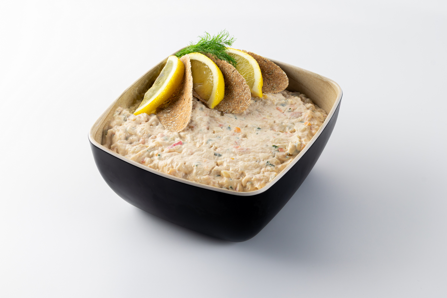 Majoneesi [rapsiöljy, vesi, KANANMUNA, sokeri, suola, sakeuttamisaineet (E412, E415), säilöntäaineet (E211, E202), SINAPPI [SINAPINSIEMEN, muunnettu maissitärkkelys, etikka, väri (E150a), valkopippuri], happamuudensäätöaineet (E260, E330)], savustettu LOHI 21 % (Norja), kylmäsavustettu LOHI 5,2 % (Norja), jodioitu suola, tomaattisose, mausteet (mustapippuri, paprika, korianteri, sipuli, cayenne) maissidektroosi, hiivauute, tartarpikkelssi [porkkana, kurkku, etikka, kukkakaali, sipuli, aromit], omena, ruohosipuli.