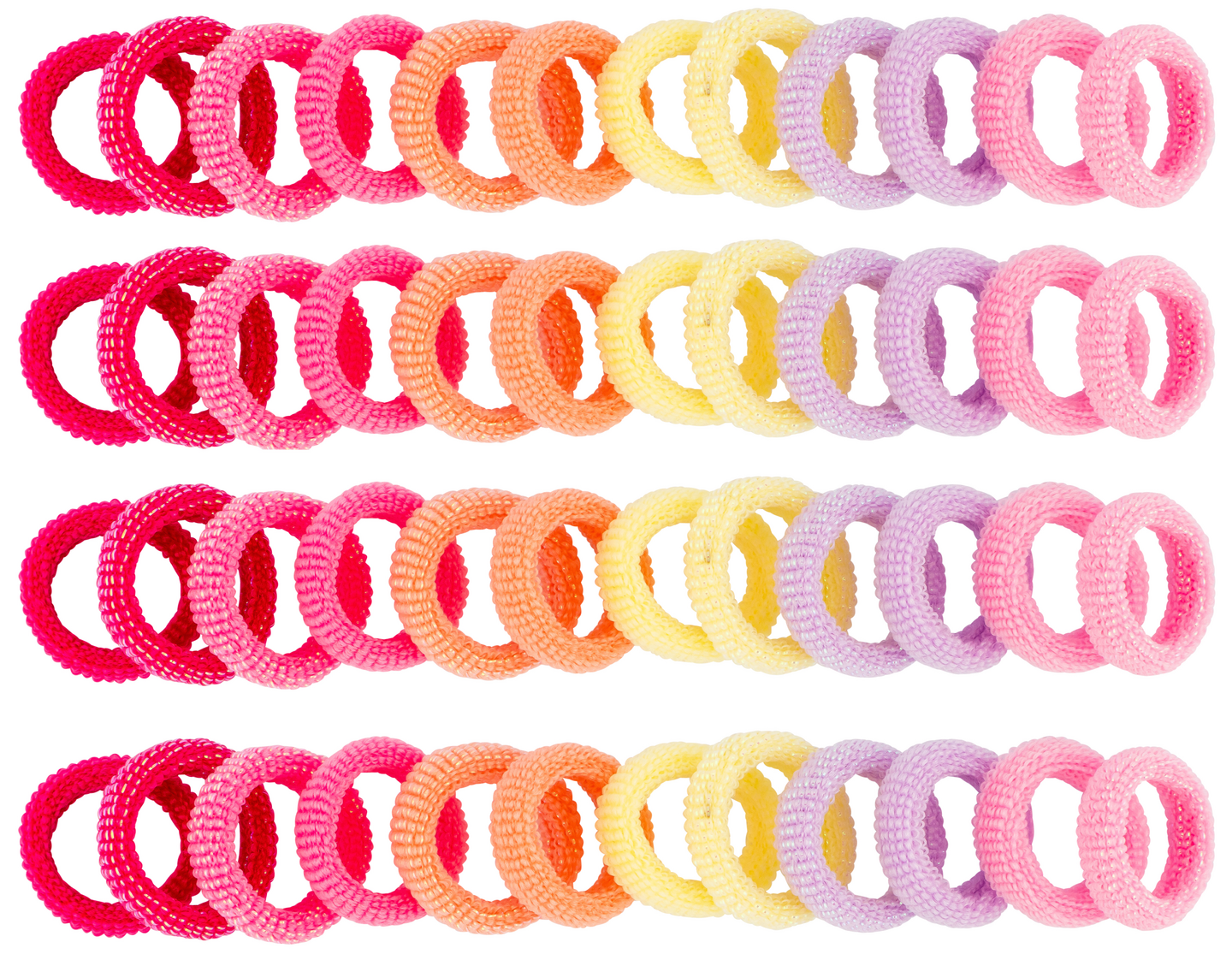 Lasten hiuslenkkisetti. Setissä 48 kpl erivärisiä pieniä hiuslenkkejä. Sopii hennoille hiuksille. Metalliton.