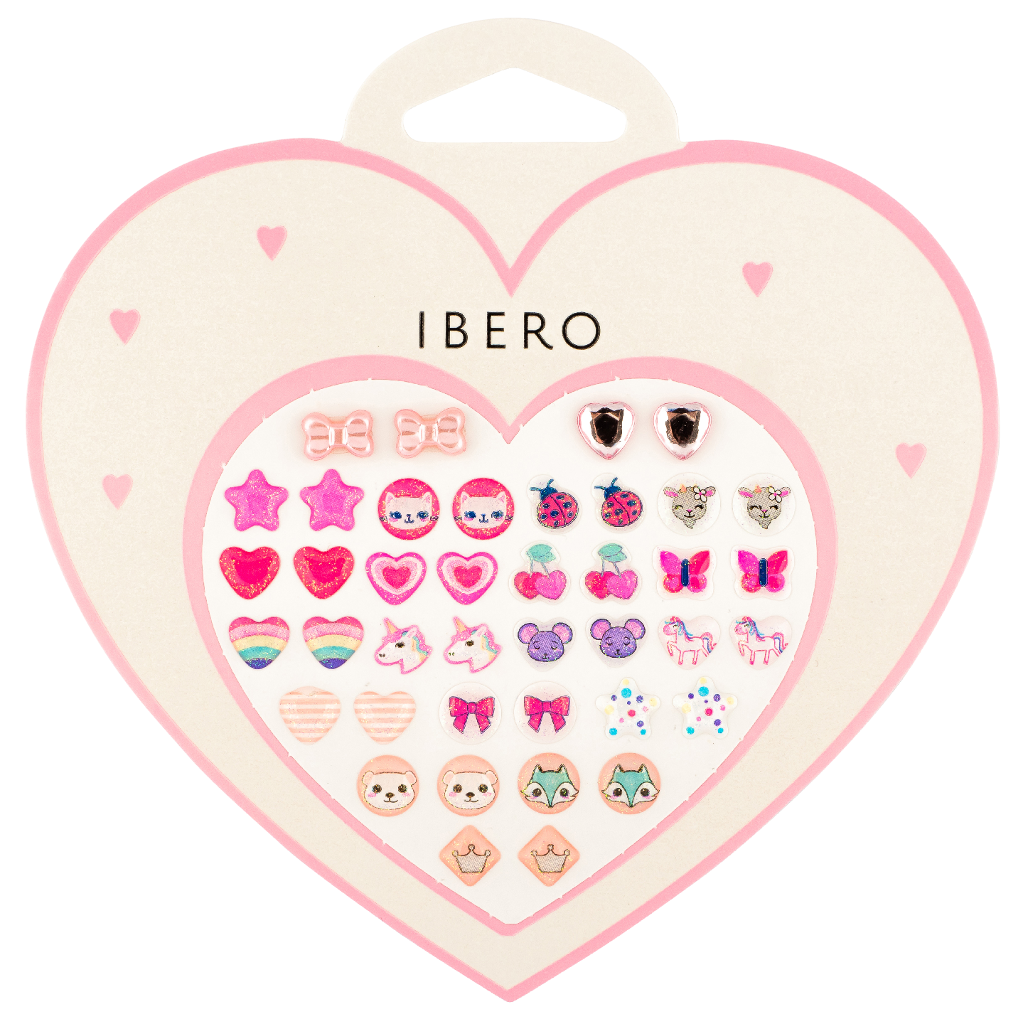 Lasten tarrakorvakorusetti. Pakkaus sisältää 40 kpl erilaisia tarrakorvakoruja. Ihana lahjaidea. Nikkelitestattu EU 94/27/EEC.