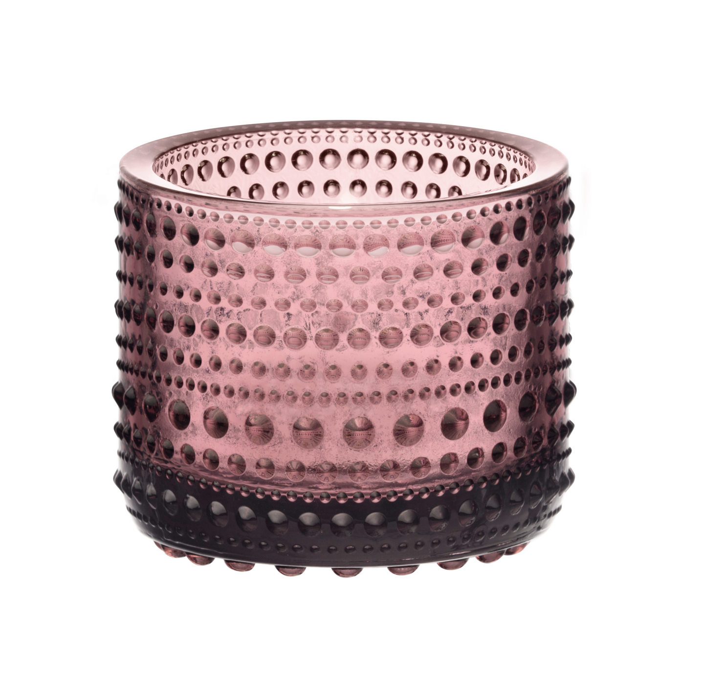 Oiva Toikan Kastehelmi-sarjan tunnistettava kuvio on saanut inspiraationsa luonnosta. Astioiden pinnalla loistavat lasihelmet muistuttavat aamuauringossa kimaltavia kastepisaroita. Sarjaan kuuluu monikäyttöisiä ja koristeellisen kauniita astioita. Rakastettuun Iittalan Kastehelmi-sarjaan kuuluu eri kokoisia monikäyttöisiä lasiastioita. Lasilyhty on nyt saatavana aistikkaan kanervan värisenä, joka ilmentää pohjoisia metsämaisemia. Hienostunut ja elävä lasihelmipinta heijastaa valoa ja muistuttaa aamun kastepisaroita. Erivärisiä kynttilälyhtyjä yhdistelemällä voit luoda personallisen tunnelman. Kanervan värinen Kastehelmi-kynttilälyhty sopii myös ajattomaksi ja rakastetuksi lahjaksi läheisellesi.