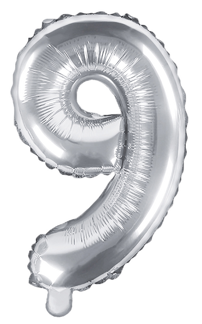Ilmapallokeskus Numerofolio 9 hopeanvärinen puhallettava 35cm