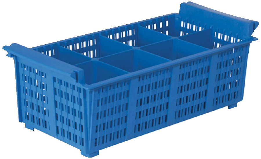 Inoxmacelin pesulokerikko (43x21x15 cm) on 8-lokeroinen tiskikori aterimille.