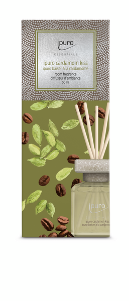 iPuro huonetuoksu luo tunnelman jokaiseen tilaan. Cardamom Kiss huonetuoksu on maisteinen sekoitus kanelia, neilikkaa ja lämpimän sitruksisia vivahteita. iPuro tuoksut on kehitelty Grassen kaupungissa, Ranskassa. Kaupunki on hajuvesiteollisuuden keskuspaikka. Kaikki Ipuro-tuotteet valmistetaan Euroopassa tarkan laadunvalvonnan alla. Tuoksuissa käytetään vain luonnollisia tai luontaisen kaltaisia korkealaatuisia tuoksuja ja aromeja.