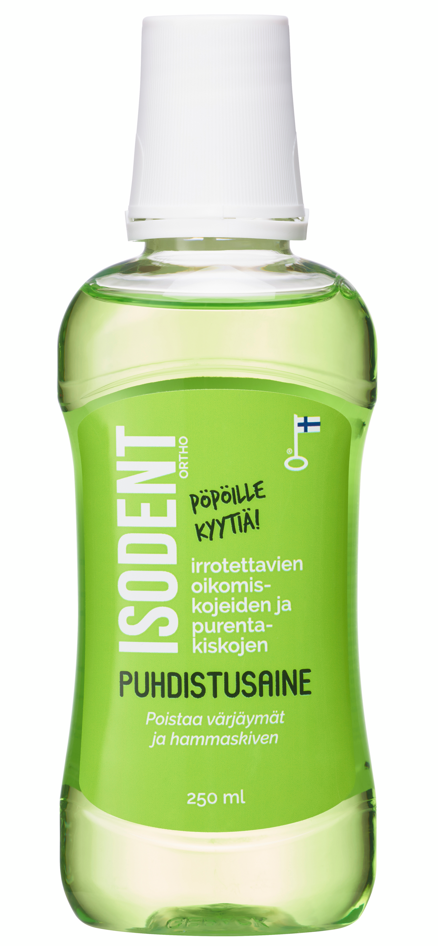 IsoDent Ortho on irrotettaville oikomiskojeille ja purentakiskoille suunniteltu tehokas ja vaivaton puhdistusaine, joka jättää jälkeensä raikkaan mintun maun. Vaikka IsoDent Ortho on armoton pinttymille, sienikasvustoille ja bakteereille, se on hellävarainen itse oikomiskojeelle. Siksi sitä voi käyttää vaikka päivittäin.