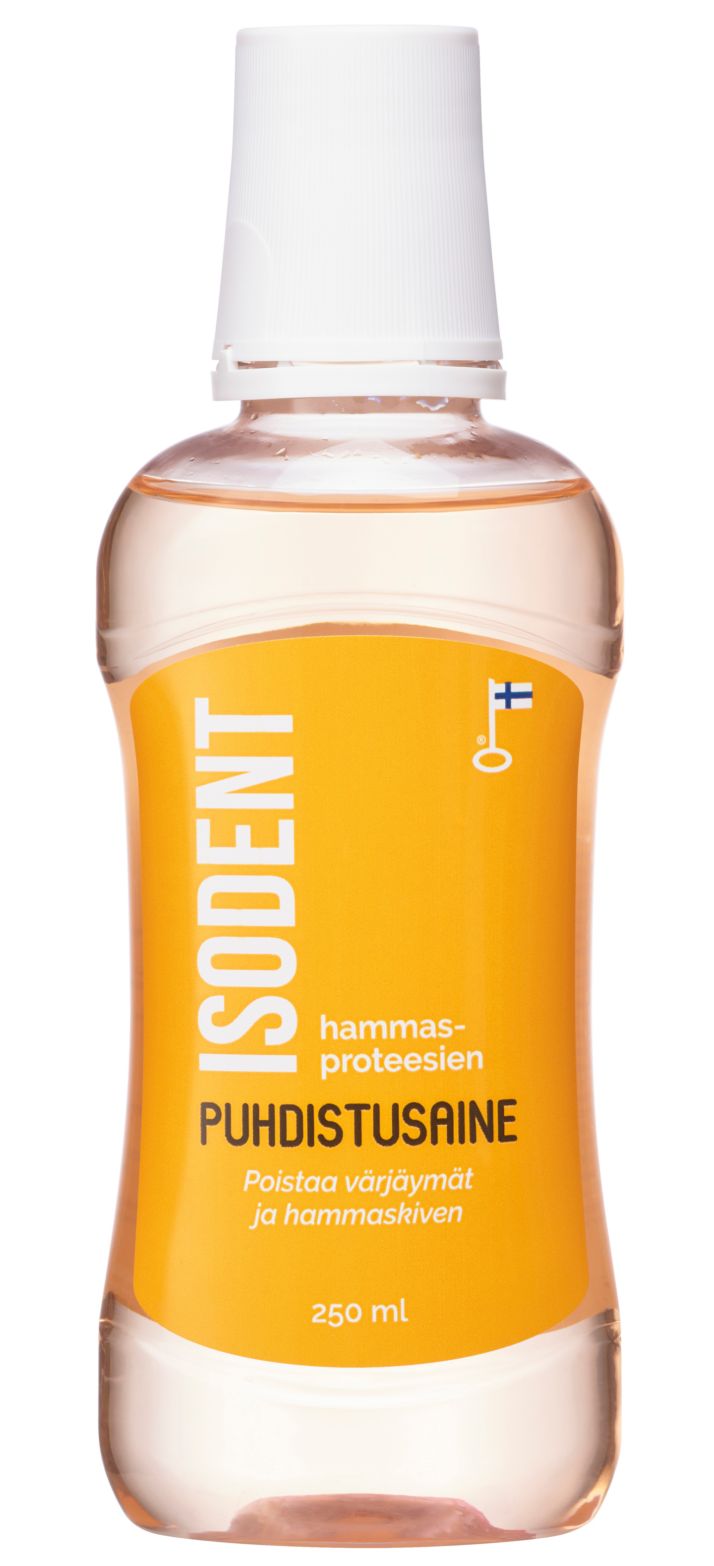 Bakteerien, sienikasvustojen ja värjäytymien lisäksi se liuottaa proteesistasi myös hammaskiven. IsoDent on nestemäinen tiiviste ja se myydään riittoisassa 250 ml pullossa, joka kestää yhdellä käyttäjällä jopa 3 kuukautta päivittäisessä käytössä.