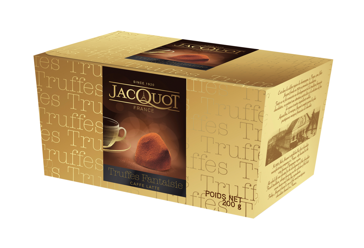 Tryffeleillä hemmottelet sekä makunystyröitä että mieltä. Suussasulavat Jacquot kaakaopinnoitteiset tryffelit ovat oiva valinta herkutteluun. Caffe Latte – hieno aromaattinen kahvinmakuinen tryffeli.