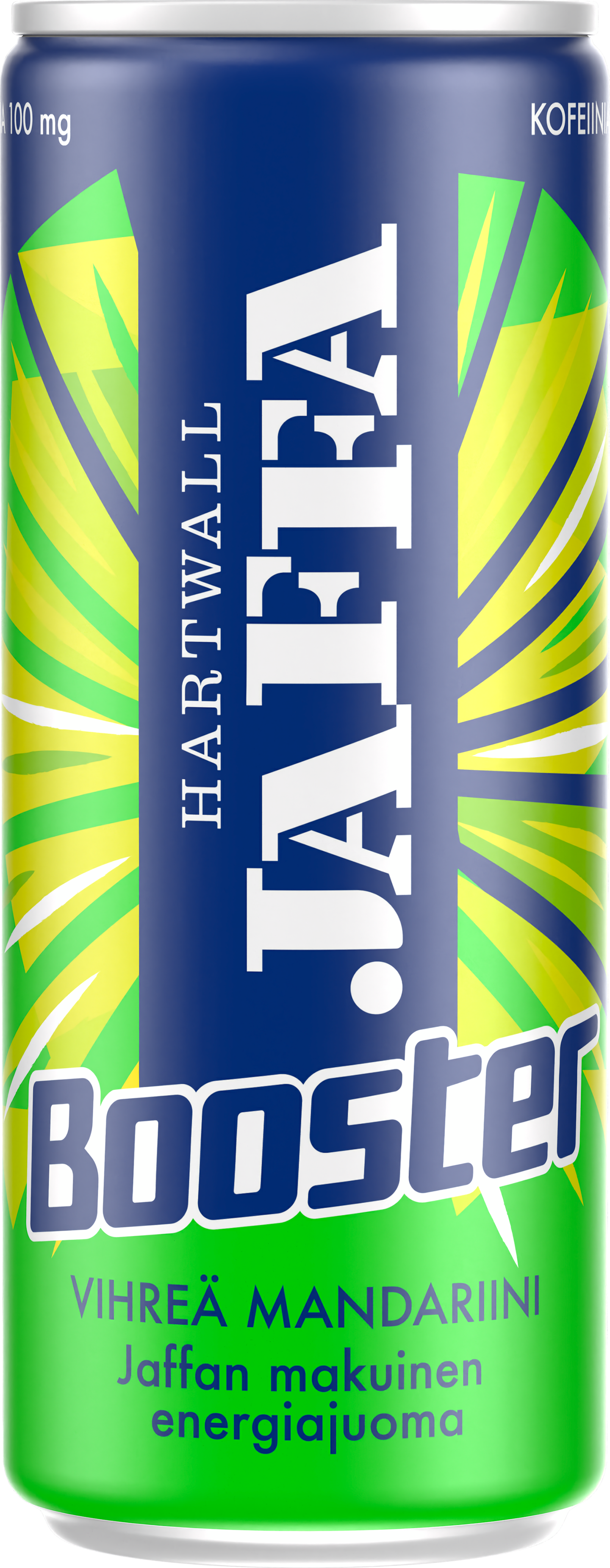 VegaaninenJaffa Booster Vihreä Mandariini on raikas energiajuoma, joka maistuu ikoniselta Hartwall Jaffalta. Herkullinen vihreän mandariinin makuinen juoma yhdistää energiajuoman ja virvoitusjuoman parhaat puolet: se sisältää 30 mg/100 ml luontaista kofeiinia ja piristäviä B-vitamiineja, mutta maistuu aivan raikkaalta virvoitusjuomalta.