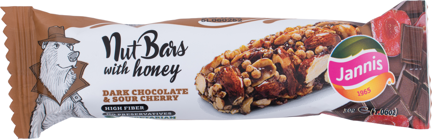 Jannis hunajainen pähkinäpatukka 30g tumma suklaa ja hapankirsikka