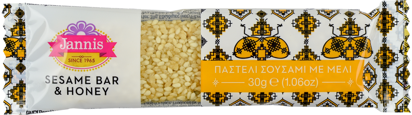 Herkullinen välipalapatukka, joka sisältää seesaminsiemeniä ja hunajaa. Sopii sekä välipalaksi että herkutteluun.
