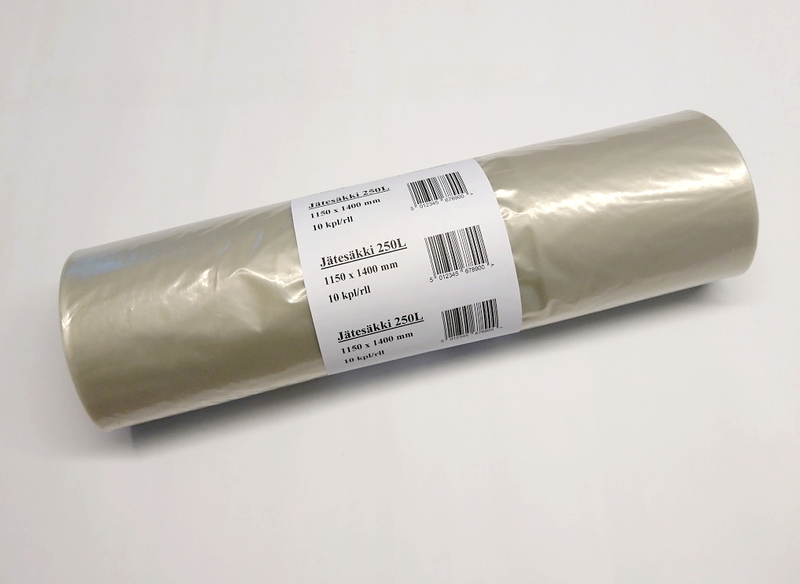 Jätesäkki 250l, läpinäkyvä - vahva, 250-litrainen läpinäkyvä jätesäkki! Vahvuus 0,06mm.