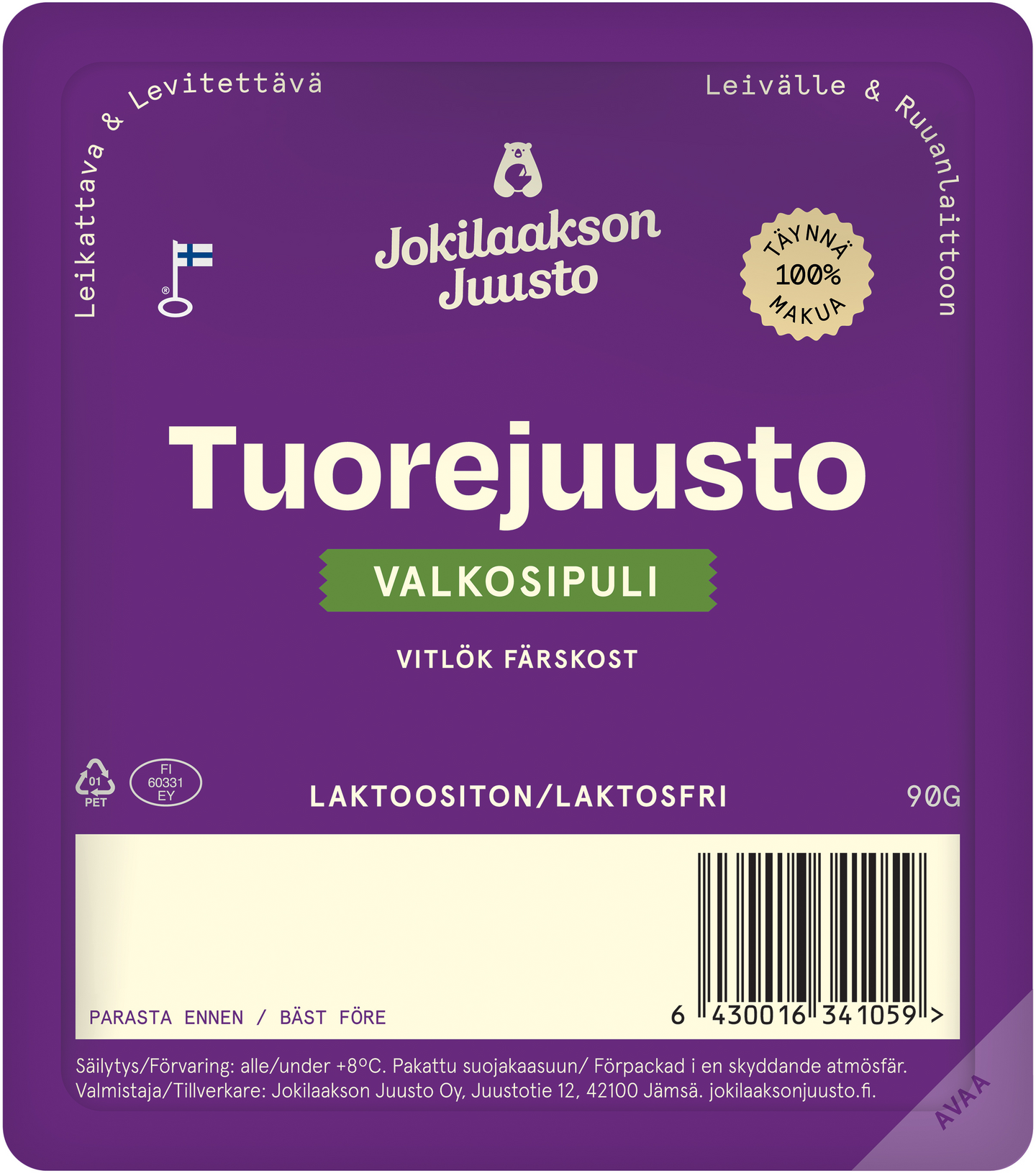 Jokilaakson Juuston Tuorejuusto Valkosipuli on voimakas tuorejuustopala joka sopii niin juusto-tarjottimelle kuin keksien päälle. Käytä sitä myös antamaan makua ja täyteläisyyttä keittoihin, pastaan ja kastikkeisiin.