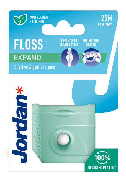 Jordan Expand hammaslanka laajenee käytössä ja puhdistaa hammasvälit tehokkaasti. Hellävarainen ikenille. Hammaslanka sisältää fluoria. Raikas mintun maku.