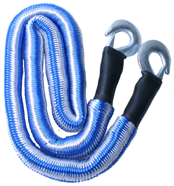Henkilöautojen hinaamiseen, joustava hinausköysi. Pituus venytettynä n. 4 m, lujuus 1200kg. Molemmissa päissä jousilukittu koukku.