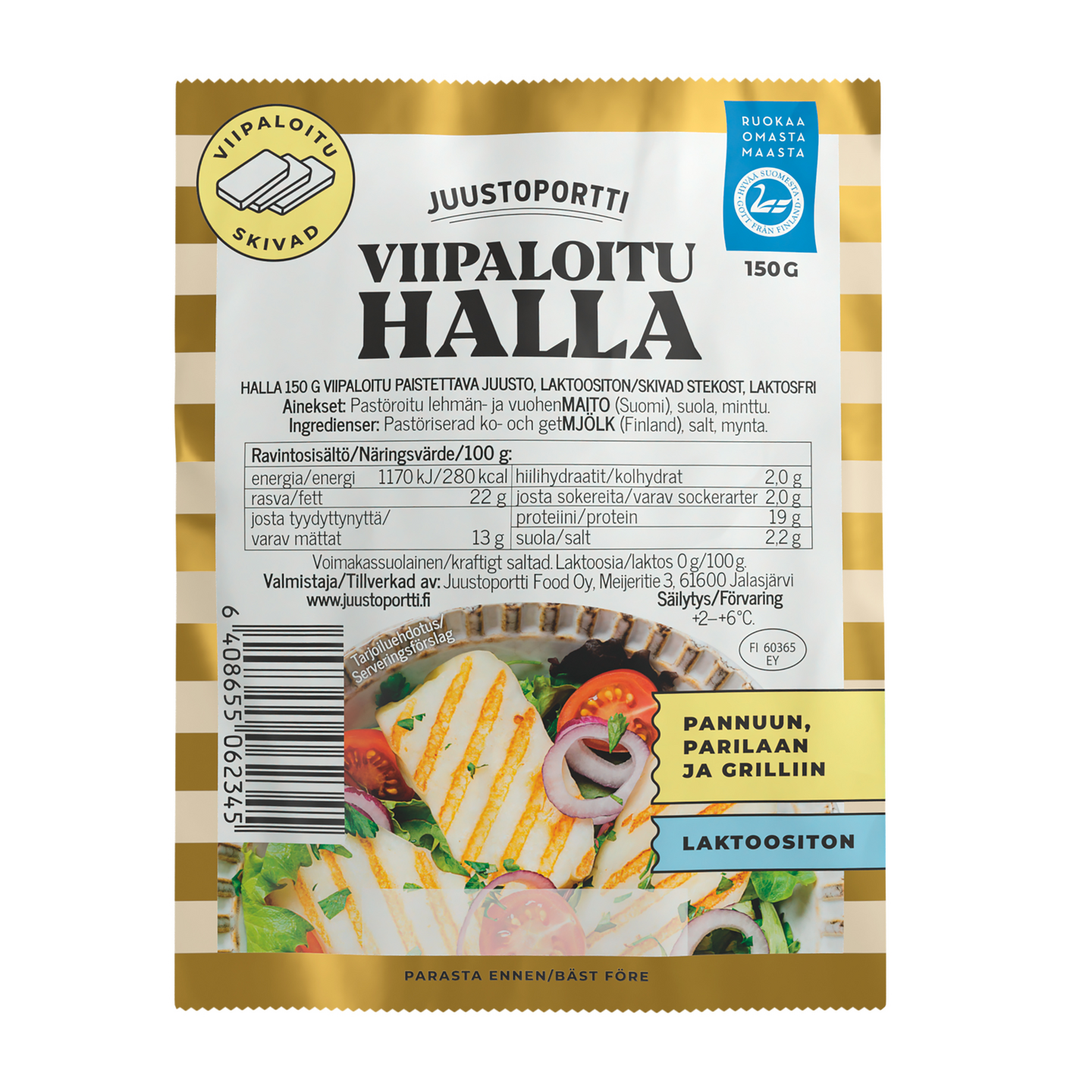 LaktoositonHalla on täydellinen juusto grillaamisen ja paistamiseen, sillä se kestää kuumuutta kuten paistettavan juuston kuuluukin. Halla on suomalainen juusto, joka maistuu sellaisenaan paistettuna, burgerin välissä tai paneroituna juustotikkuina. Halla valmistetaan suomalaisesta lehmän- ja vuohenmaidosta ja on maustettu mintulla. Juustoportti on perheyritys, joka on saanut tunnustusta hyvänä työnantajana ja perinteisen toimialan uudistajana, saaden mm. Euroopan ensimmäisenä eläinten hyvinvointia mittaavan Welfare Quality® -sertifikaatin. Juustoportti on jo yli 30 vuoden ajan luonut joka kuukausi yhden uuden, pysyvän työpaikan.
