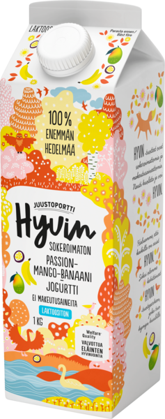 Juustoportti Hyvin sokeroimaton ja makeutusaineeton jogurtti 1kg passion-mango-banaani laktoositon