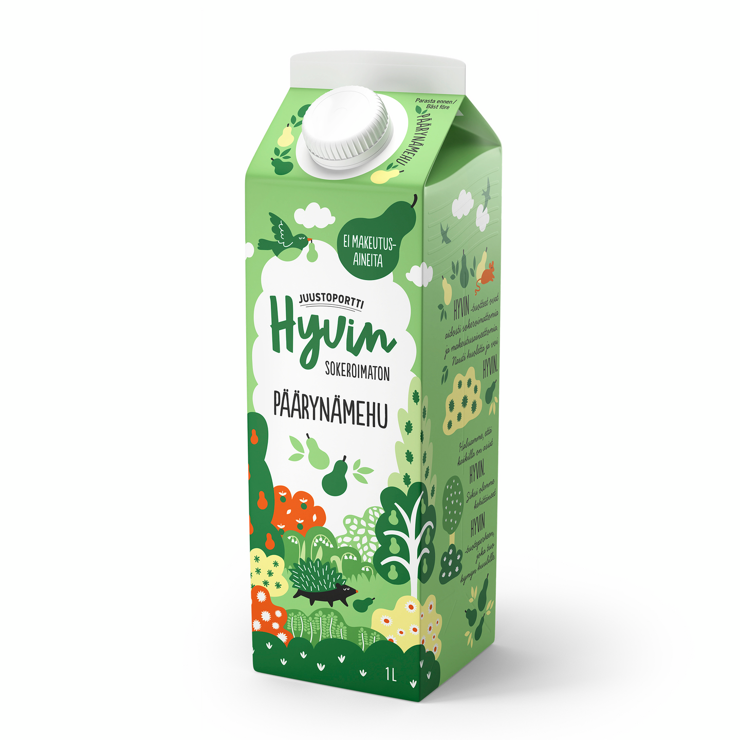 Nyt on HYVIN sokeroimatonta ja makeutusaineetonta mehua! Nämä mehut miellyttävät niin lapsia, kuin heidän vanhempiaan. Hiilihydraatteja päärynämehussa 5,8 g /100 grammassa. Makeutensa mehu saa hedelmästä, eli päärynästä. Pakkauksen korkki helpottaa säilytystä. Mehut valmistetaan Juustoportilla Jalasjärvellä.