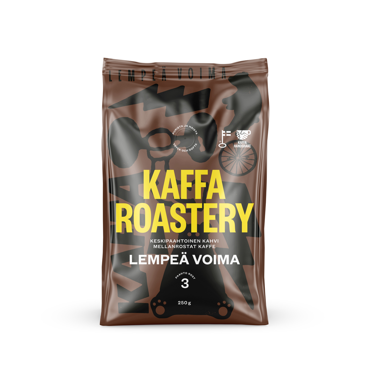 Voimakasta ja täyteläistä tamarindia ja ihanaa sokerimaista makeutta. Paahdettu tummaksi, mutta ei poltettu kitkeräksi. Lisänä pirteyttä ja luonnollista täyteläisyyttä. Lempeä Voima on helposti juotavaa ja “hiton hyvää kahvia”.