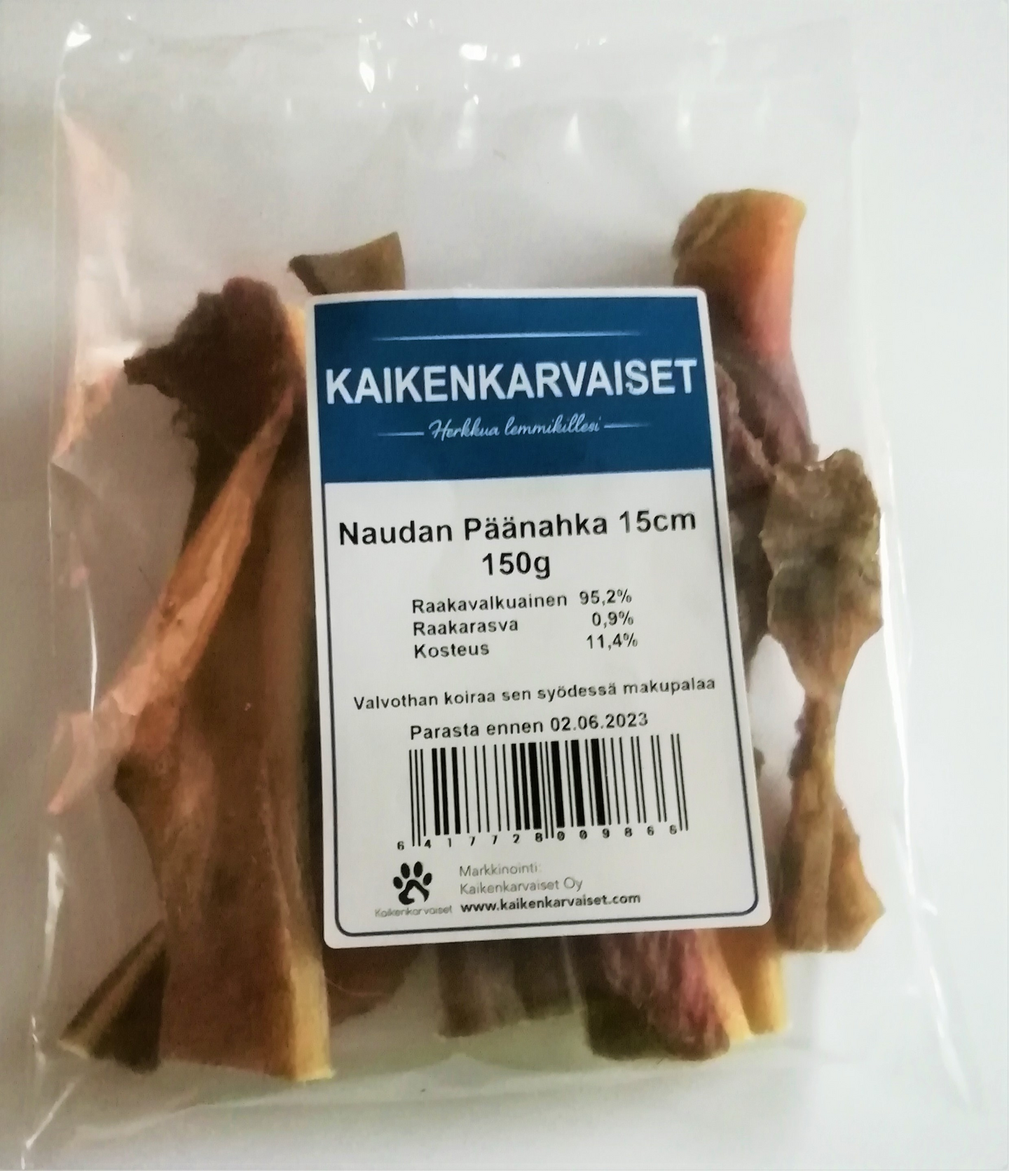 Kaikenkarvaiset naudanpäänahkaherkku 150g koirille