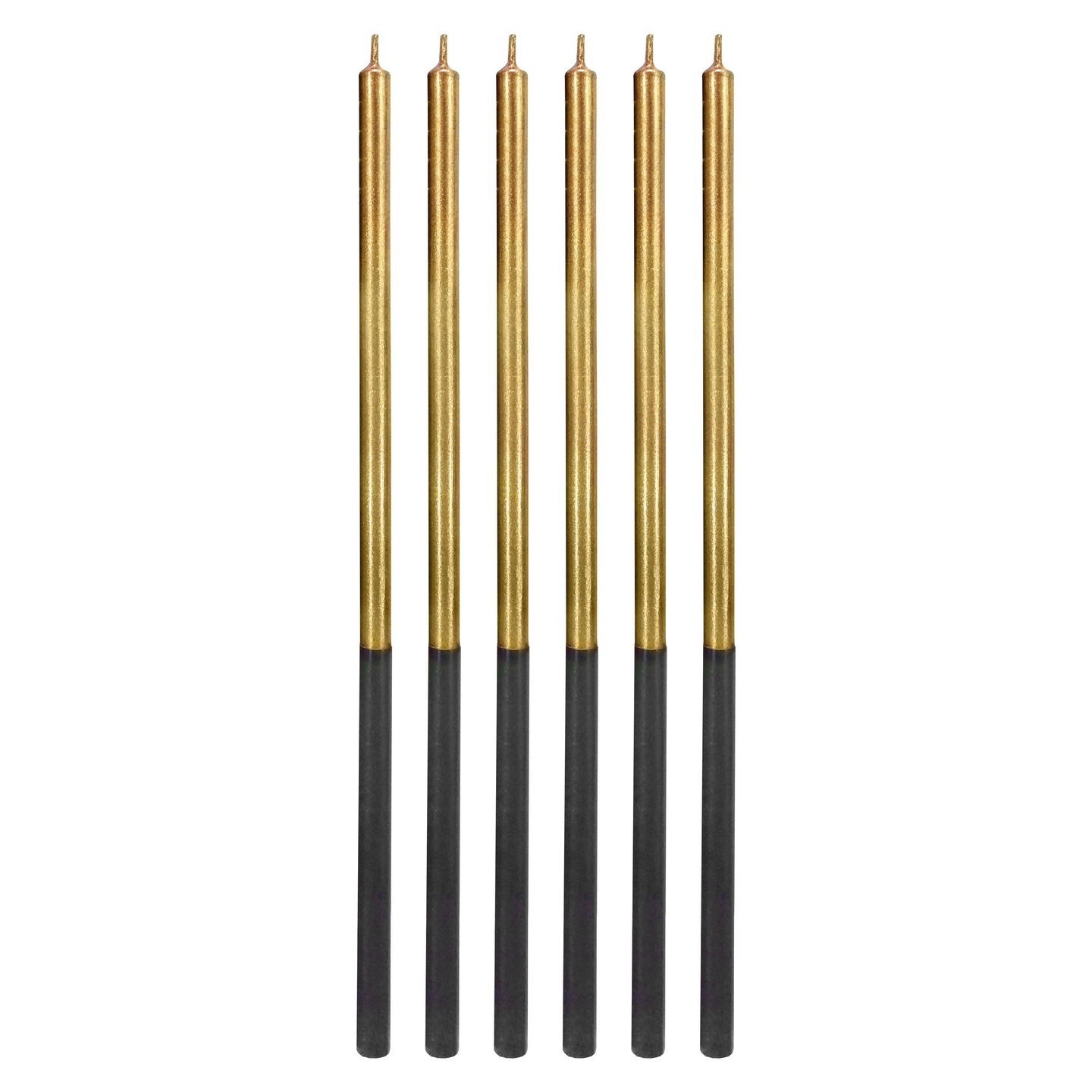 Kullanväriset kakkukynttilät sopii koristamaan juhlakakkua. Kynttilöiden koko on 14,5 cm ja pakkaus sisältää 6 kynttilää.