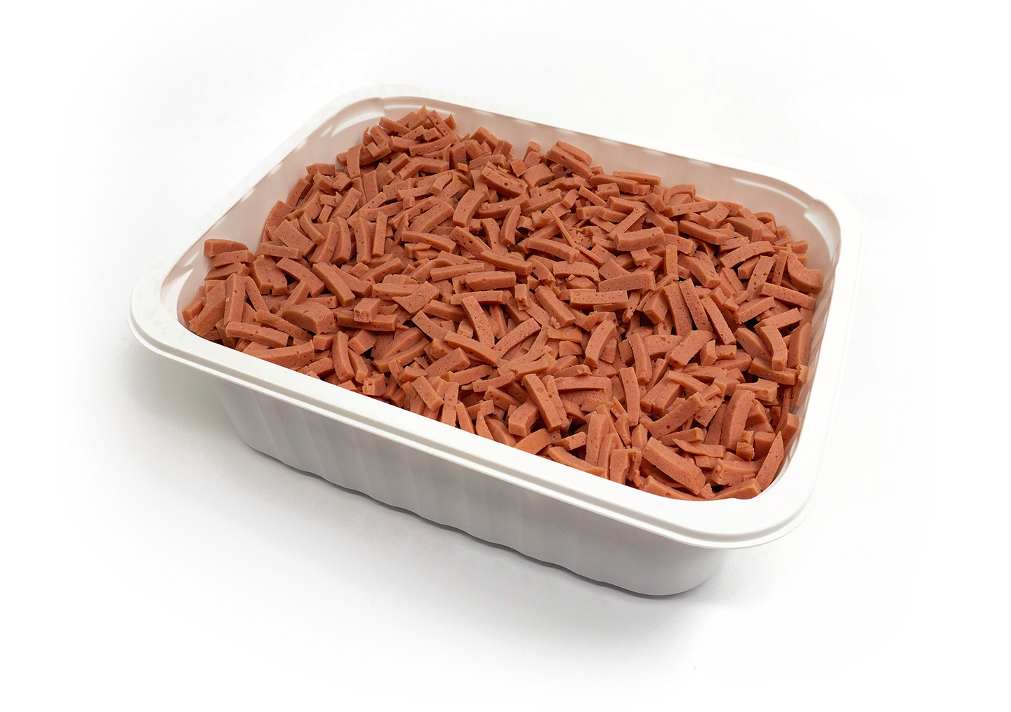 koneellisesti eritelty broilerinliha 50%(Suomi). vesi, suola, perunatärkkelys, stabilointiaine E450 E425 E407a, happamuudensäätöaine E575. hapettumisenestoaine E300, aromivahvenne E621. kanaproteiinivalmiste, glukoosi(maissi), aromit: musta- ja maustepippuri, retiisi, muskottipähkinä, punajuuri, savu, inkivääri, rapsiöljy, säilöntäaine E250. suojakaasupakattu.