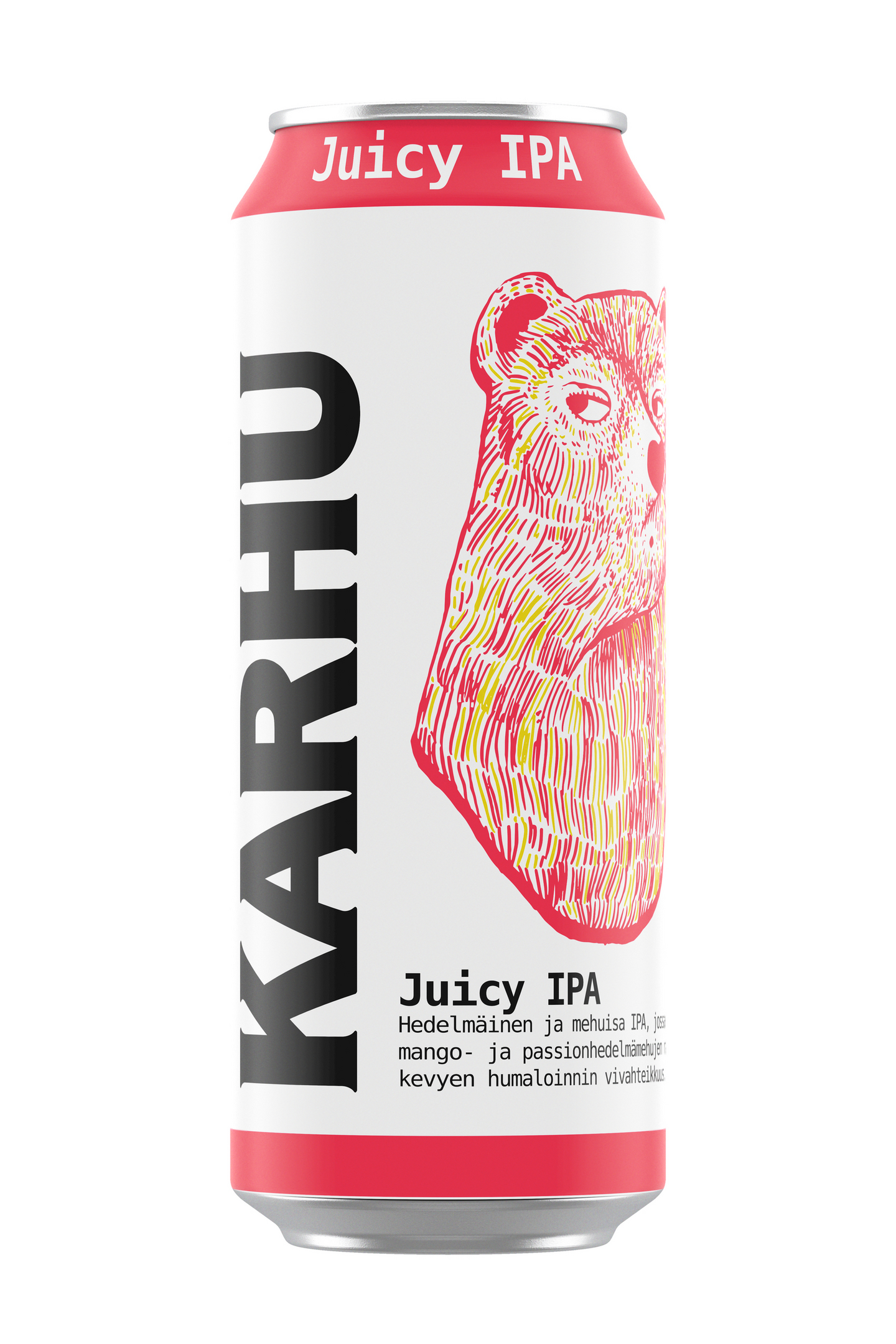 Karhu Juicy IPA on hedelmäinen ja mehuisa olut. Karhu Juicy IPA on olut, jossa kohtaavat mango- ja passionhedelmämehujen raikkaus ja kevyen humaloinnin vivahteikkuus.
