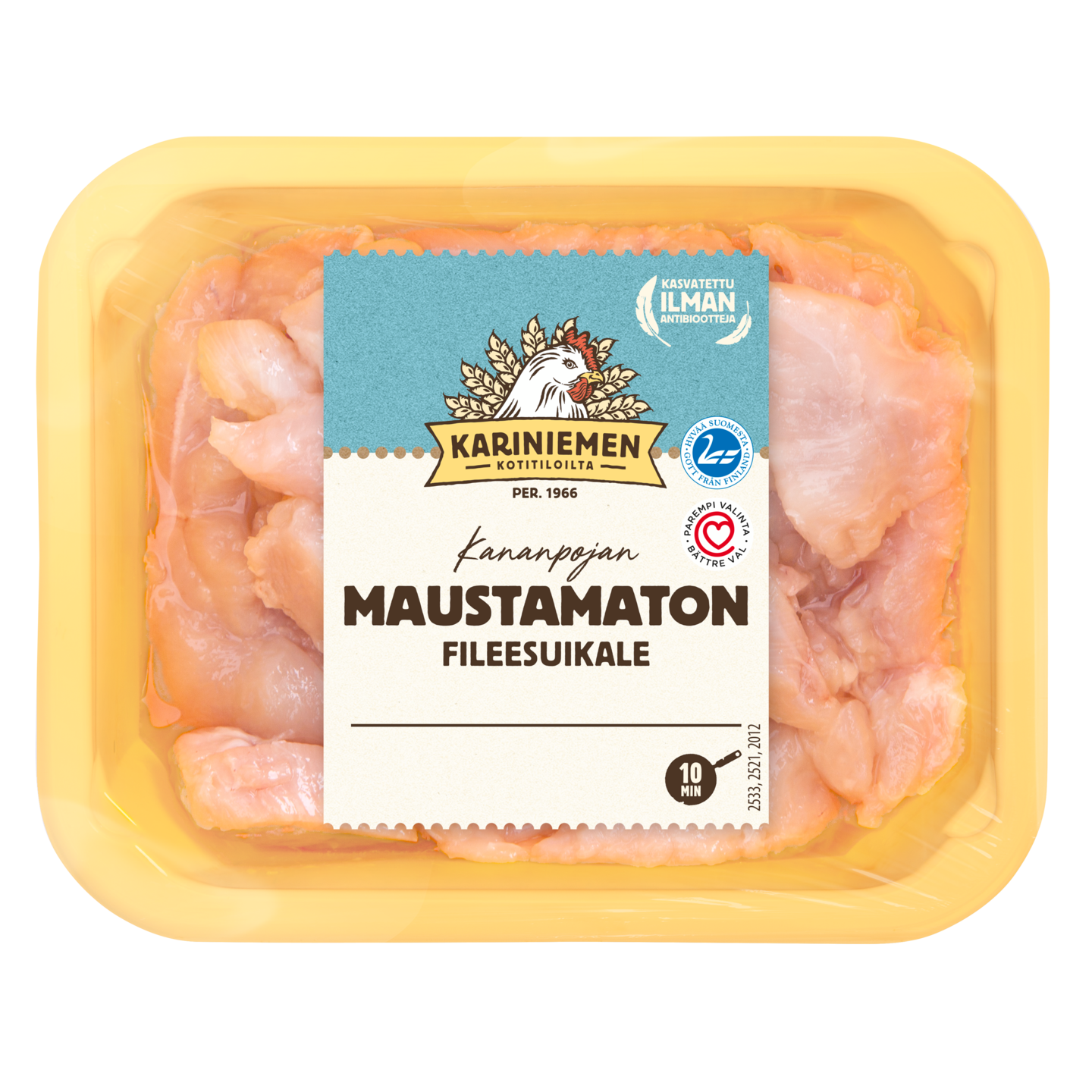 Kariniemen Kananpojan maustamaton fileesuikale sopii moneen kanaruokaan ja on helppo maustaa oman maun mukaan. Fileesuikale sopii mm kastikkeisiin, keittoon, laatikoihin, salaattiin tai täytteeksi fajitaksiin ja tortilloihin. Sillä saa nopeaa ja maistuvaa arkiruokaa. Kariniemen Kananpoika on aina suomalaista, ilman antibiootteja kasvatettua kanaa.
