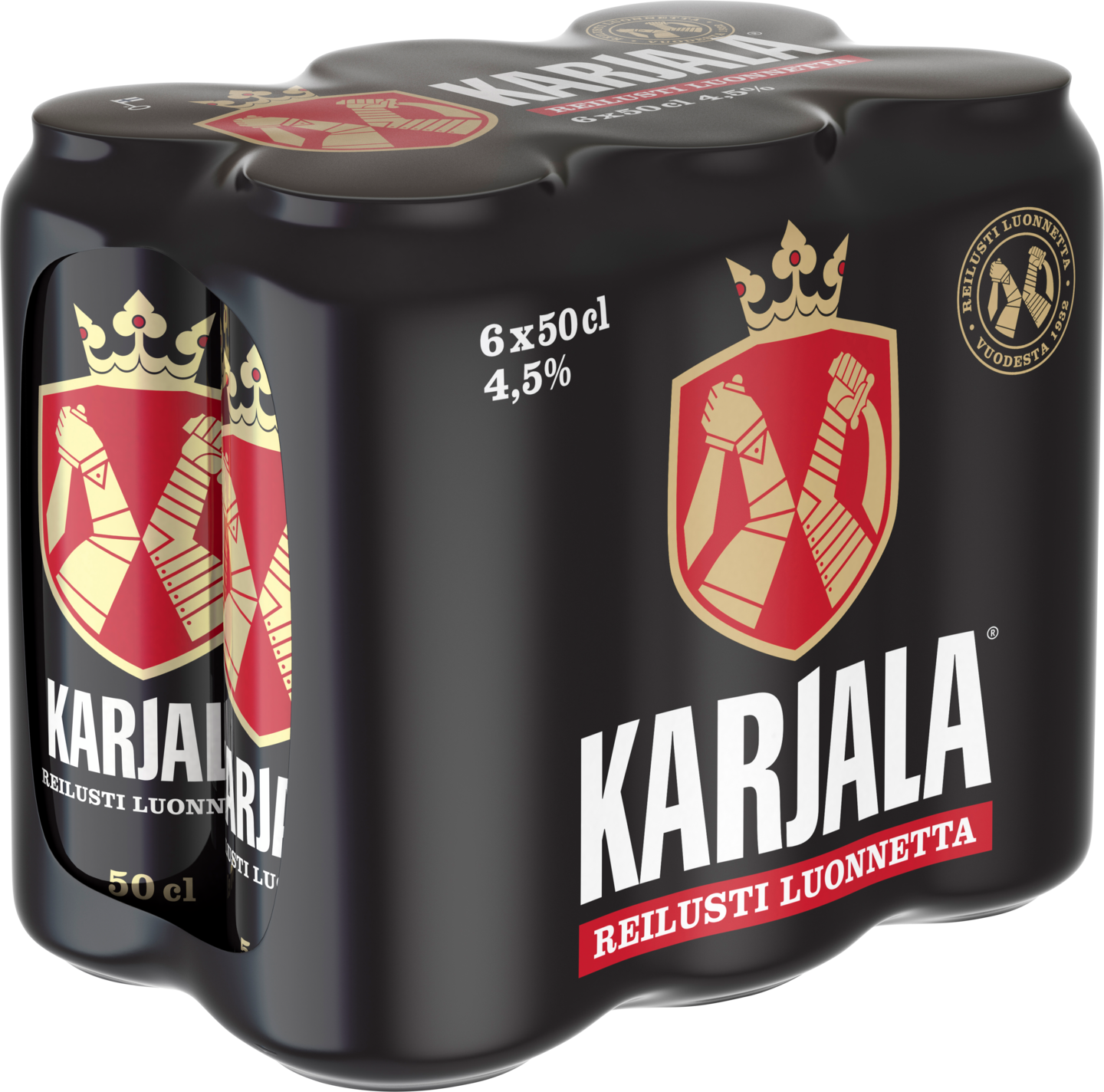 Karjala on kullanvärinen, runsaasti vaahtoava, vahva lager-olut. Sen täyteläiset maltaat ja valikoidut humala-aromit viimeistelevät Karjalan korkealaatuiseksi olueksi, joka maistuu rehdeille kavereille, jotka vaativat olueltaan reilusti luonnetta. Karjala on vahvasti mukana tapahtumissa, joissa myös tarvitaan reilusti luonnetta, kuten jääkiekossa. Ruokasuosituksena esimerkiksi kanakori tai wingsit. Sopii myös loistavasti seurustelujuomaksi. Suositellaan tarjoiltavaksi hyvin viilennettynä 4-7 -asteisena.