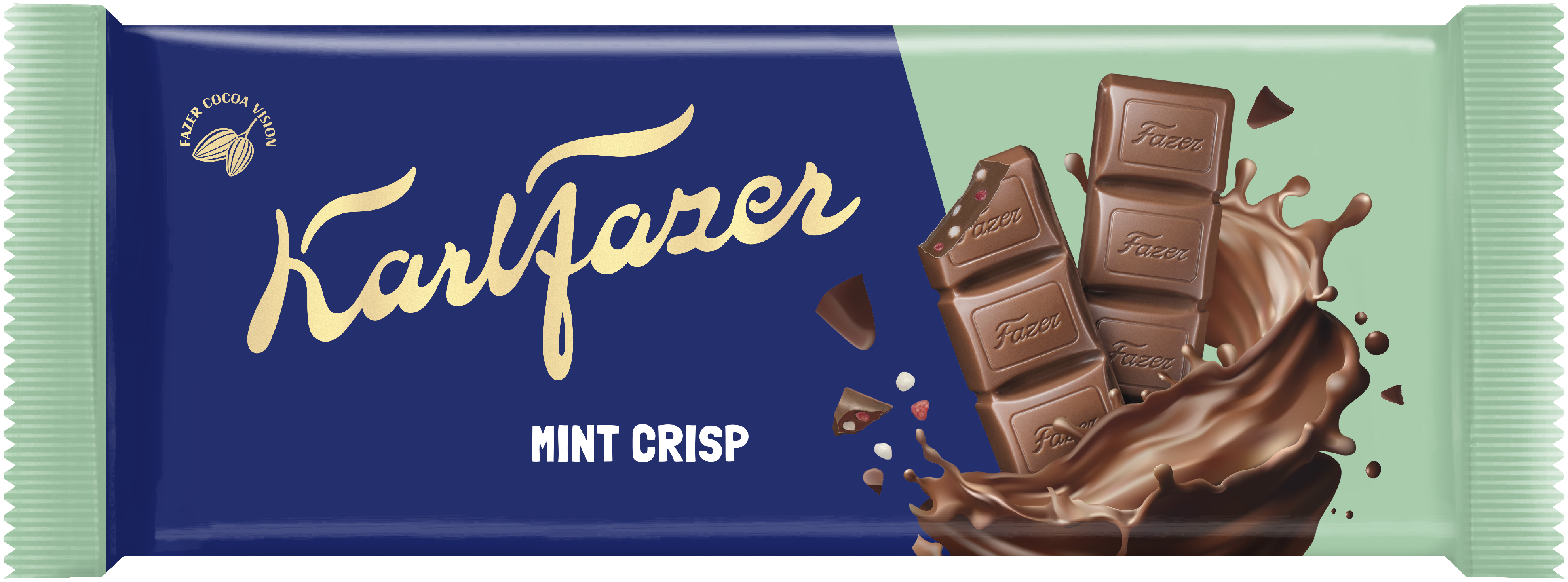 Vastustamaton yhdistelmä toisiaan täydentävää makeaa ja raikkautta: pehmeää Karl Fazer -maitosuklaata ja rapeaa minttua. Suomen rakastetuin suklaa, jonka ainutlaatuisen täyteläisen maun ovat taanneet parhaat raaka-aineet jo vuodesta 1922 saakka.