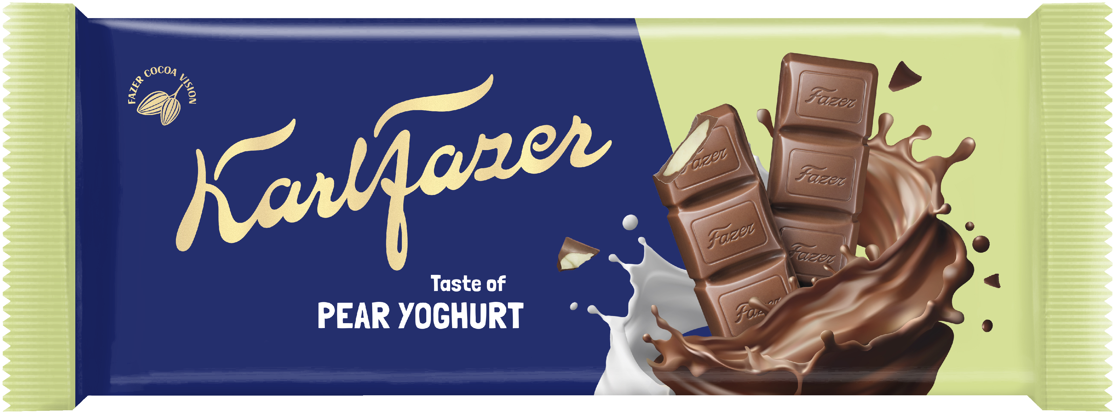 Karl Fazer Pear Yoghurt -suklaalevyssä pehmeä maitosuklaa kietoo sisäänsä raikasta päärynäjogurttitäytettä, joka tuo kesän kielelle. Suomen rakastetuin suklaa vuodesta 1922. Parhaat raaka-aineet takaavat sen ainutlaatuisen täyteläisen maun. Noudatamme kaakaonhankinnassamme Fazerin kaakaovisiota. Lue lisää www.fazercocoavision.com.