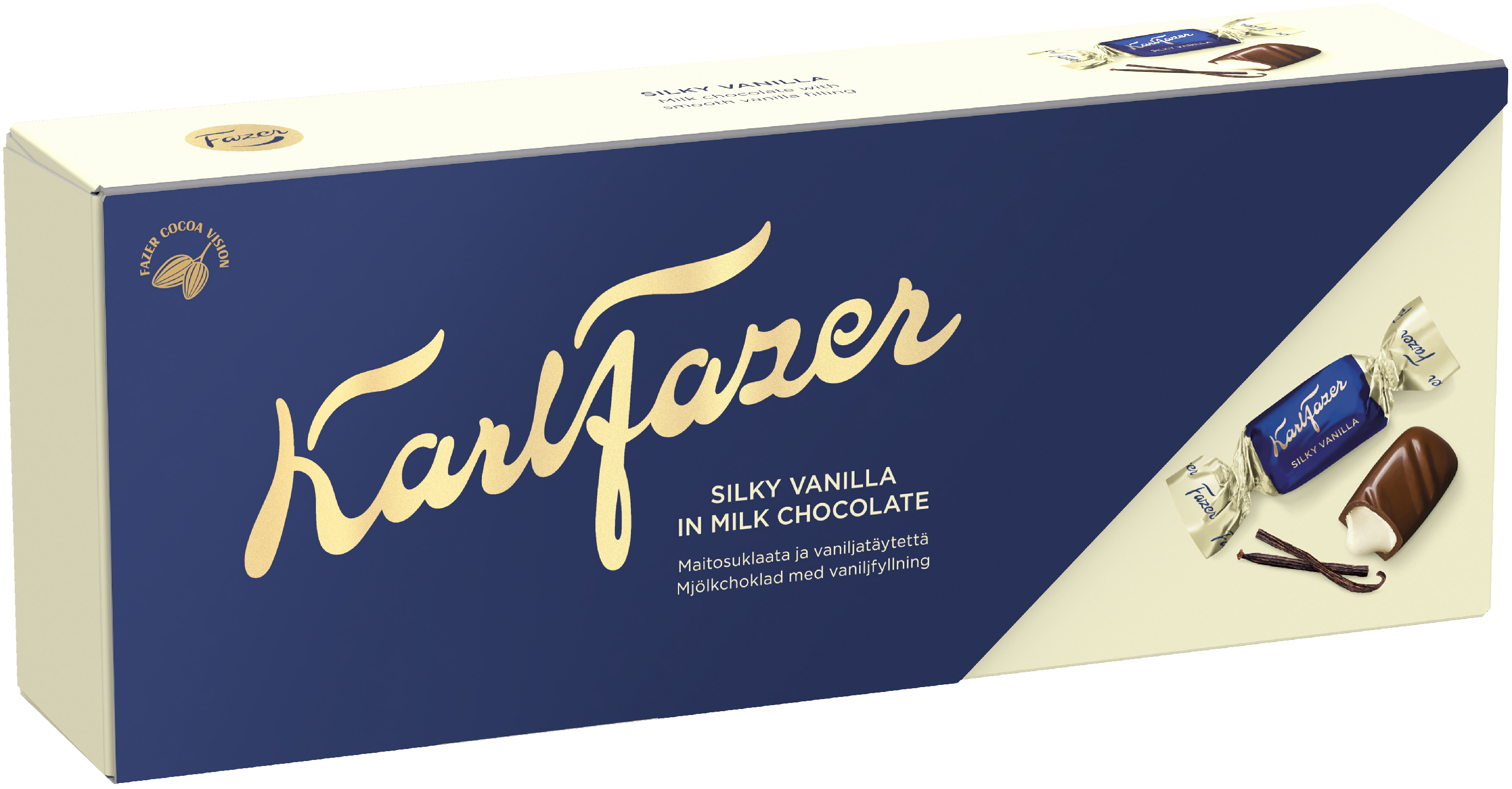 Suomen rakastetuin suklaa, jonka ainutlaatuisen täyteläisen maun ovat taanneet parhaat raaka-aineet jo vuodesta 1922 saakka. Karl Fazer vaniljakonvehdit ovat täydellinen yhdistelmä maitosuklaata ja pehmeää vaniljatäytettä. Anna parhaisiin hetkiin sopiva rasia lahjaksi tai nautiskele ystävien kanssa. Noudatamme kaakaonhankinnassamme Fazerin kaakaovisiota. Lue lisää www.fazercocoavision.com.